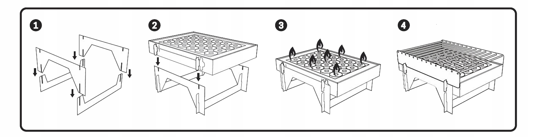Перед использованием - Поместите CasusGrill™ на твердую, ровную и негорючую поверхность и снимите с гриля решетку из картона и бамбуковых палочек.