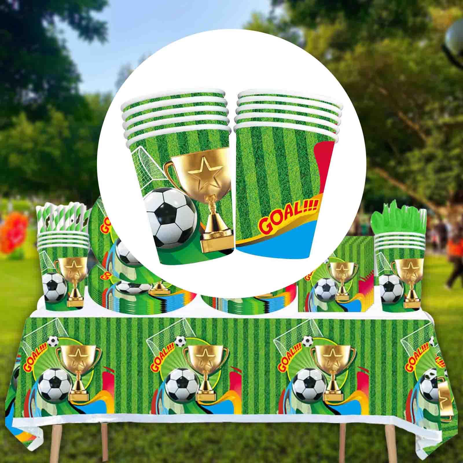 Один -время для посуды для вечеринки для вечеринки с мотивом игры в футбол для 10 бумажных чашек