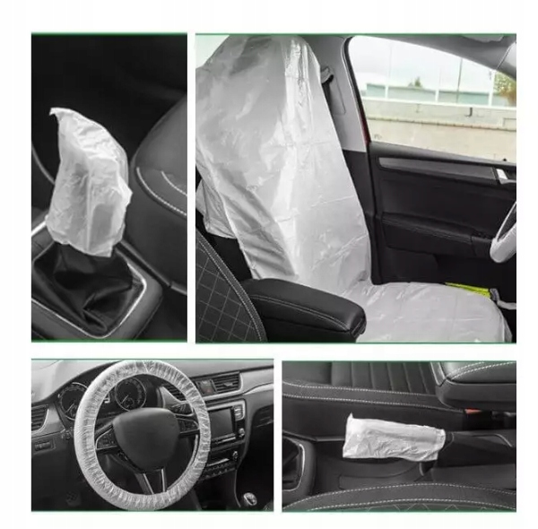 - Этот одноразовый комплект 5-в-1 для сиденья, руля, пола, ручника и рычага переключения передач.