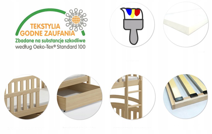 1. Мы заботимся о безопасности ваших детей, поэтому каркасы наших кроватей изготавливаются только из качественной и прочной древесины сосны. Мы не используем древесные плиты.