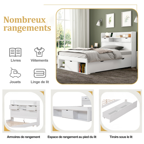 Эта кровать оснащена встроенным USB-портом и двумя круглыми розетками, что позволяет заряжать электронные устройства прямо с кровати. Дополнительные отсеки для хранения встроены в изголовье, изножье и по бокам, обеспечивая достаточно места для одежды, книг, игрушек и многого другого, помогая поддерживать порядок в спальне.