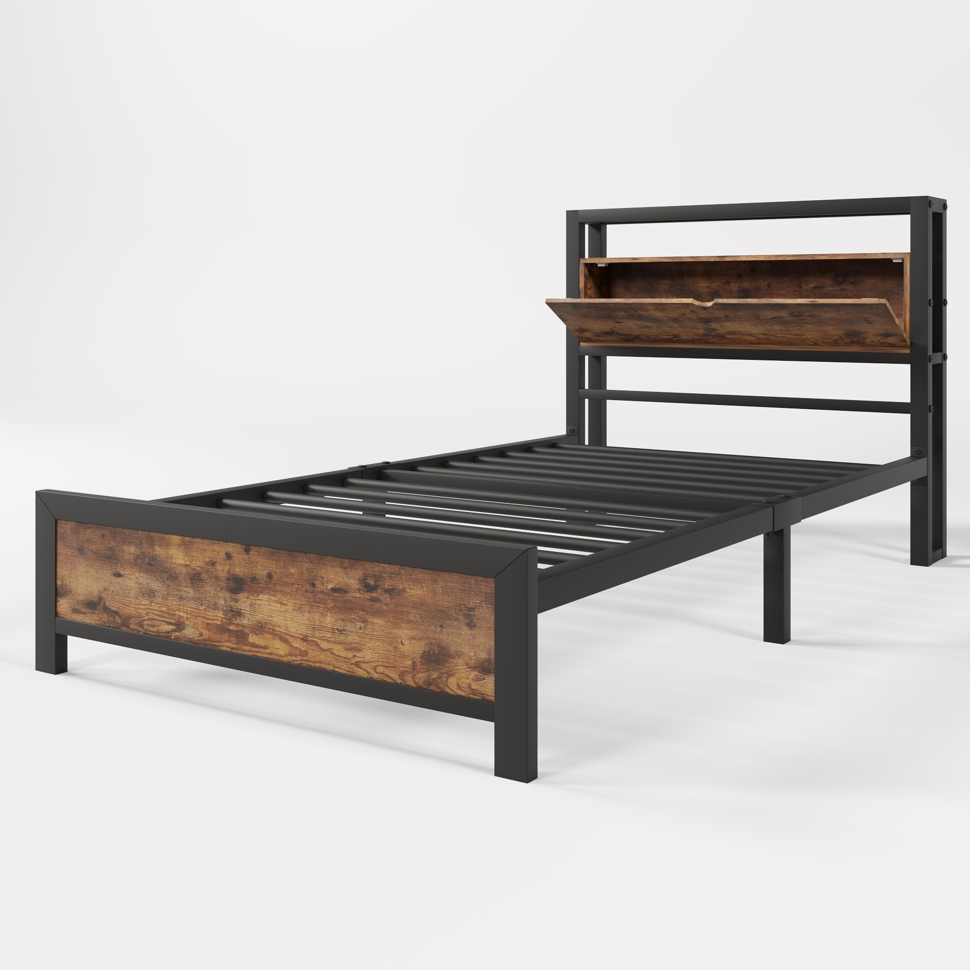 Металлическая кровать молодежная кровати односпальная кровать 90 x 200 см с хранением изголовья и рамы из металлических планок, рама для взрослых для взрослых, детей, подростков, подростков, подростков, черной промышленной кровати