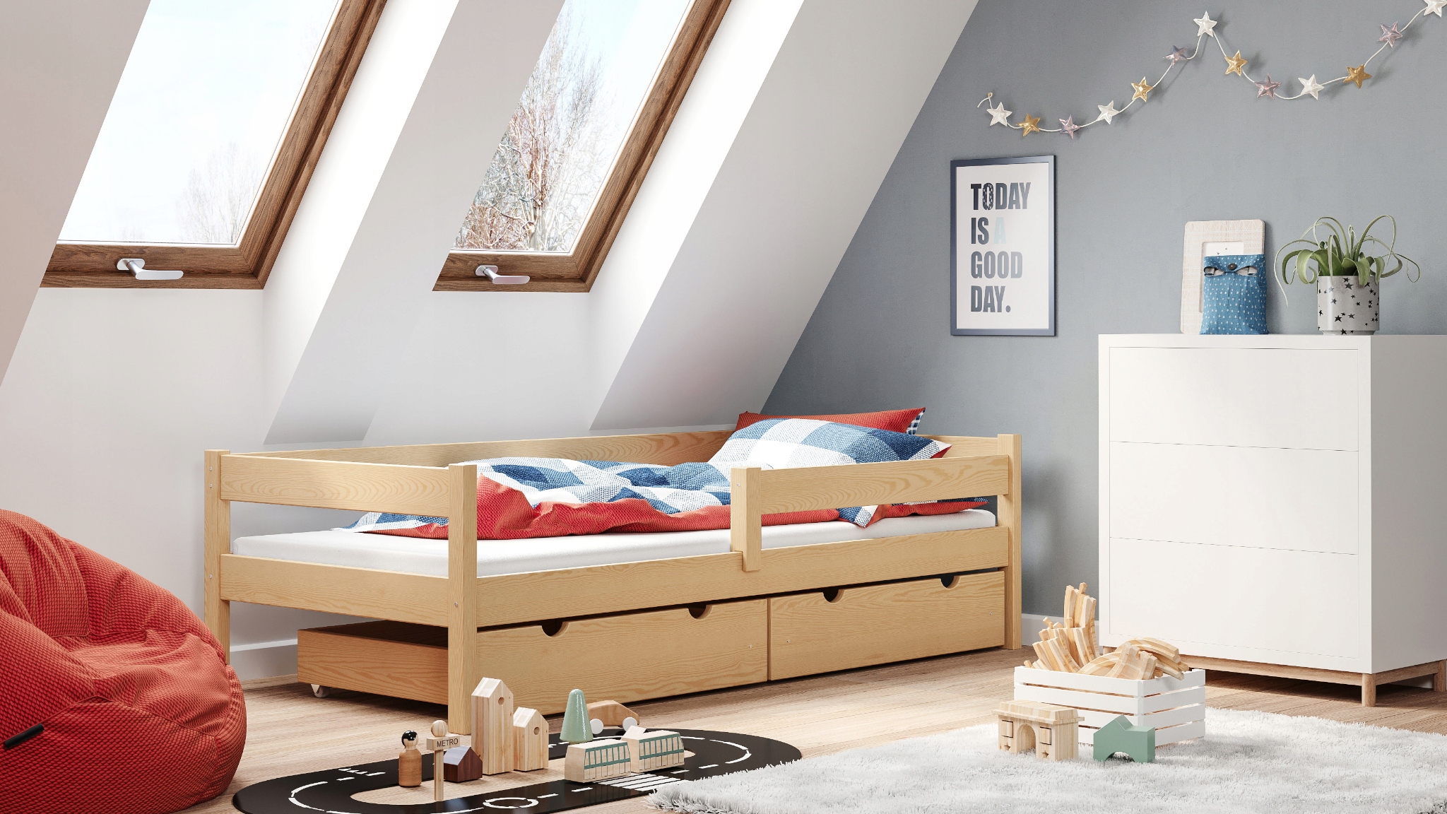 pawcio b> - эта кровать полностью сделана из высококачественной сосновой древесины. Простая конструкция кровати придает ему легкость и не перегружает интерьеры с небольшой площадью, сохраняя при этом полную стабильность. Короткий барьер универсален, гарантируя вход слева и справа благодаря возможности разборки барьеров. Длинный боковой барьер и слегка округлые края обеспечивают безопасность, как днем, так и ночью. Древесина, используемое для производства, имеет сертификат FSC