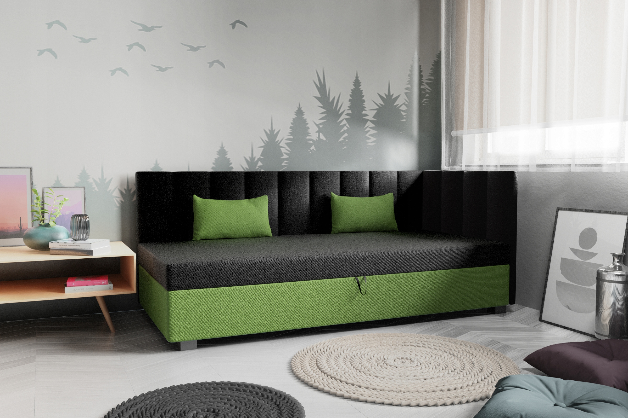 Кровать односпальная, молодежный диван сящиком для постельного белья+спинка+подушки Paula