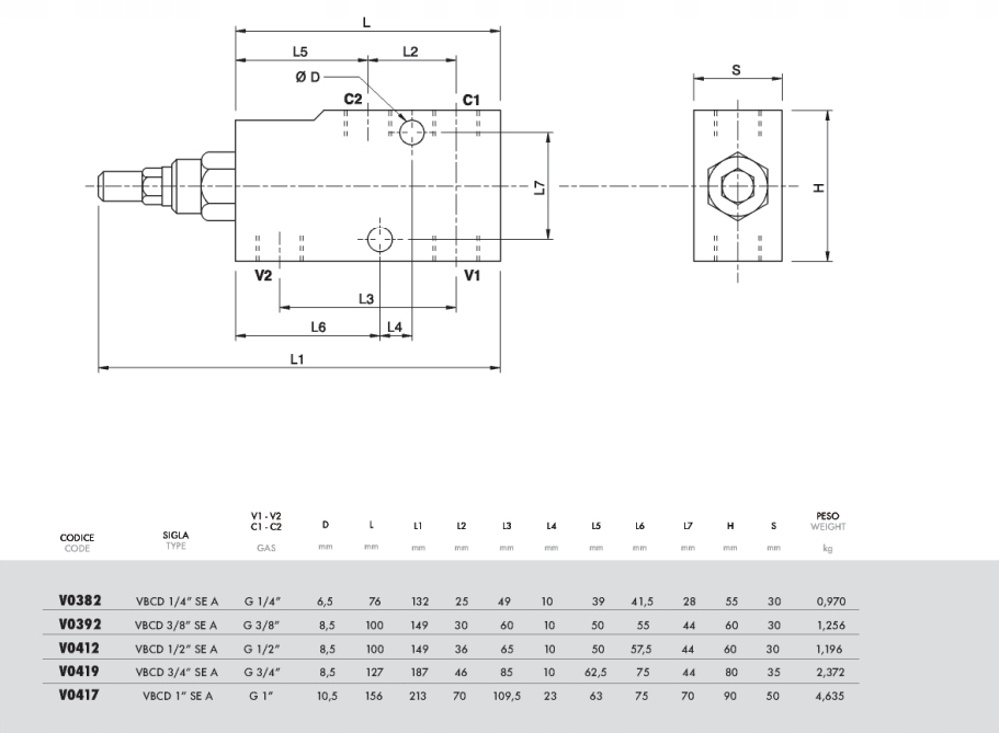 перегруженный клапан одностороннего VBCD SE-A BSP 3/8 40L 350BAR