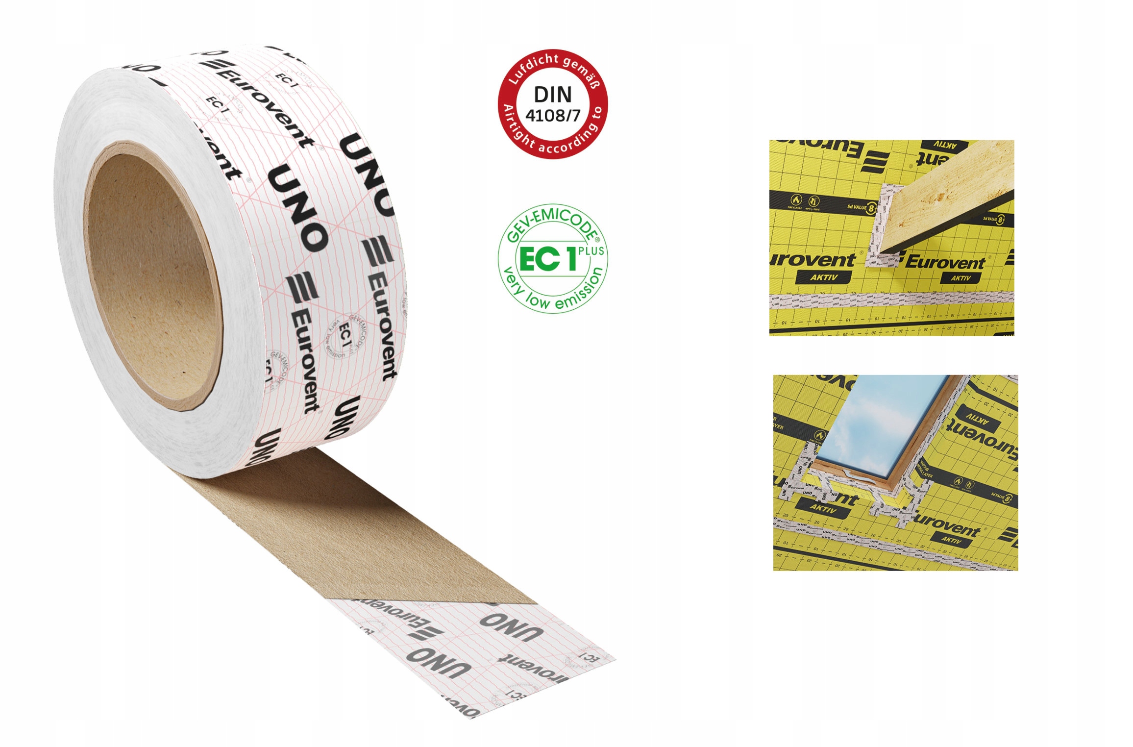 Односторонняя лента Eurovent® UNO для приклеивания и ремонта пароизоляционной и кровельной пленки, кровельных мембран и других пластиковых материалов. на основе строительной продукции. Изготовлен из полиэтиленовой фольги, армированной полиэфирным волокном и покрытой специальным клеем на основе акриловой дисперсии. Защищено разделительной силиконовой бумагой.