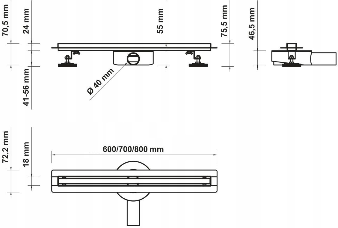 Odpływ liniowy 60 cm SLIM odwodnienie liniowe CHROM - obrotowy syfon 360