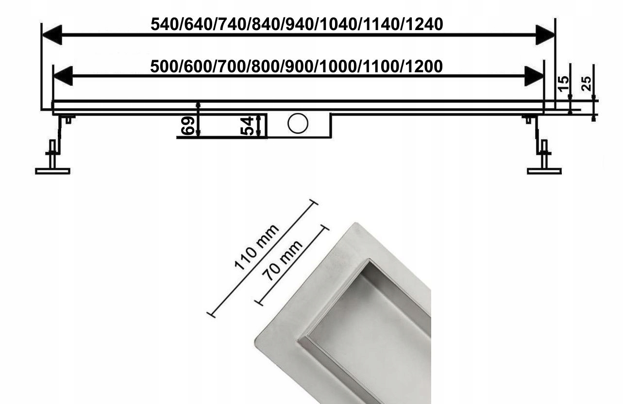 ODPŁYW LINIOWY CZARNY MATOWY 80 CM STAL NIERDZEWNA