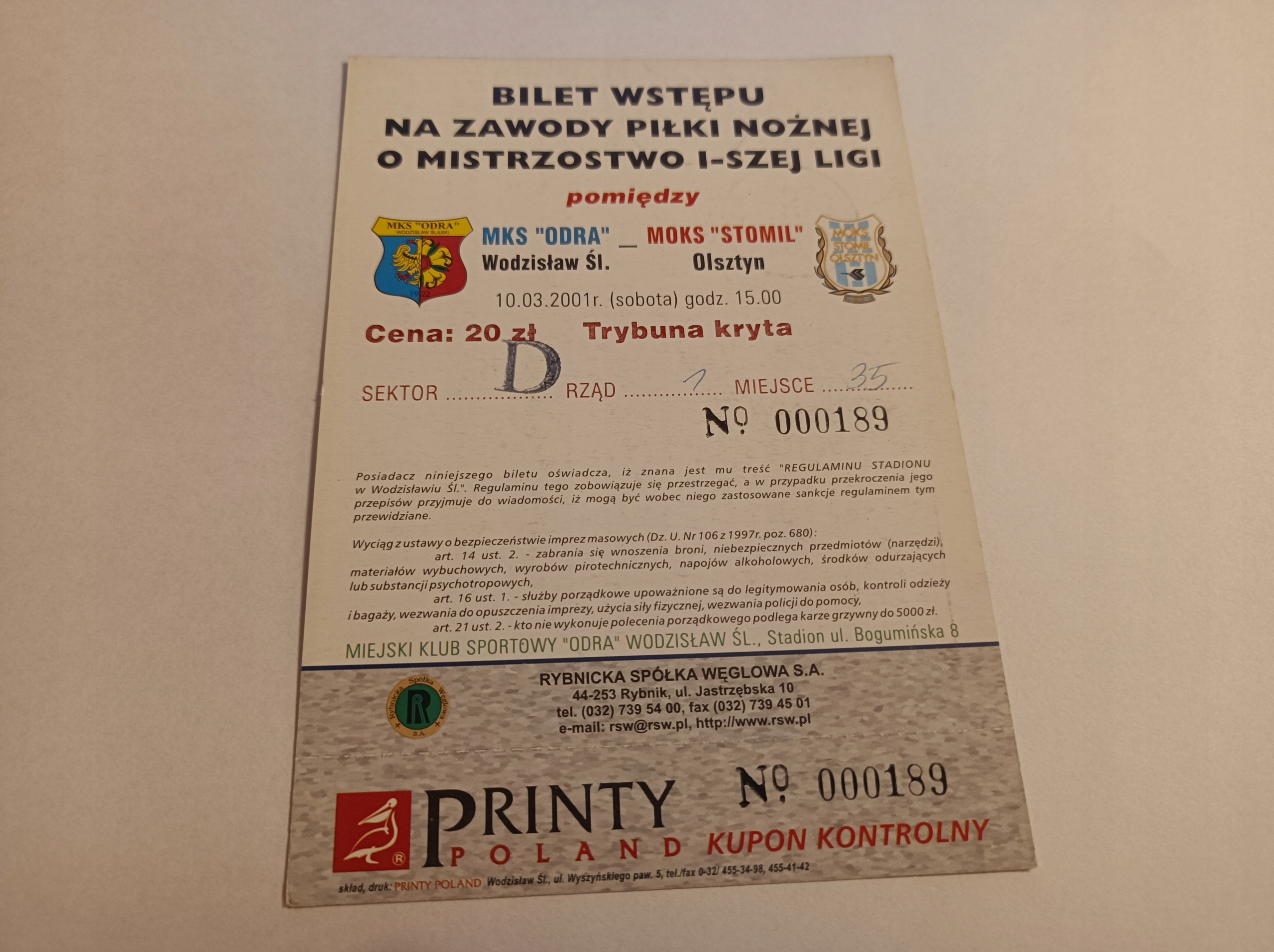 ODRA WODZISŁAW - STOMIL OLSZTYN 03-10-2001