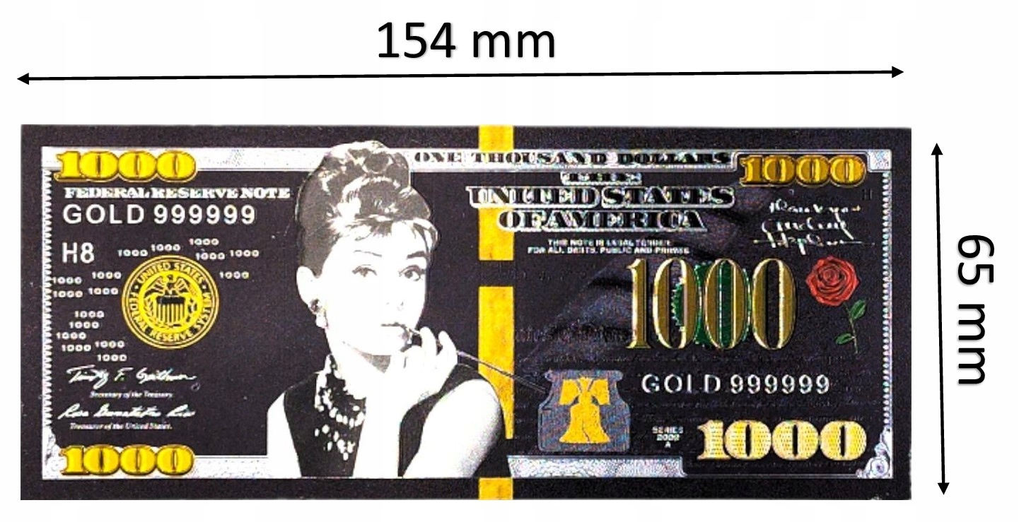 НАБОР ПОЗОЛОЧЕННЫХ БАНКНОТ ЧЕРНАЯ Одри Хепберн