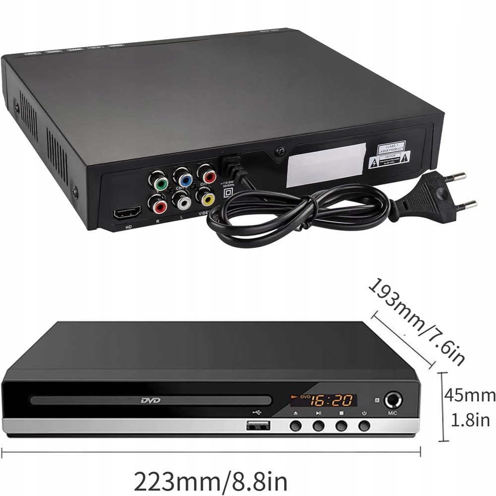 💽 【Сверхкомпактный дизайн】: Размеры этого HDMI DVD-плеера составляют всего 22,3 x 19,3 см. Размер х 4,5 см, тонкий и компактный, поэтому он легко и стильно вписывается в вашу домашнюю развлекательную систему. Высококачественные компоненты и прочные материалы делают DVD-плеер достаточно надежным и долговечным, чтобы выдерживать повседневное использование.