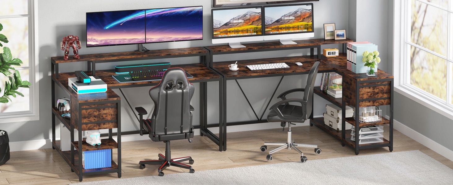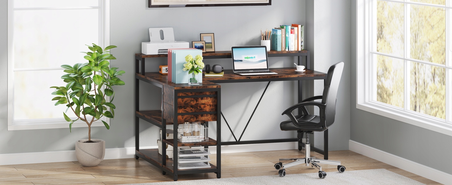 Отличное место для хранения благодаря полкам: Угловой стол Tribesigns имеет открытую полку для хранения книг или документов. Кроме того, в двойных ящиках можно разместить мелкие предметы