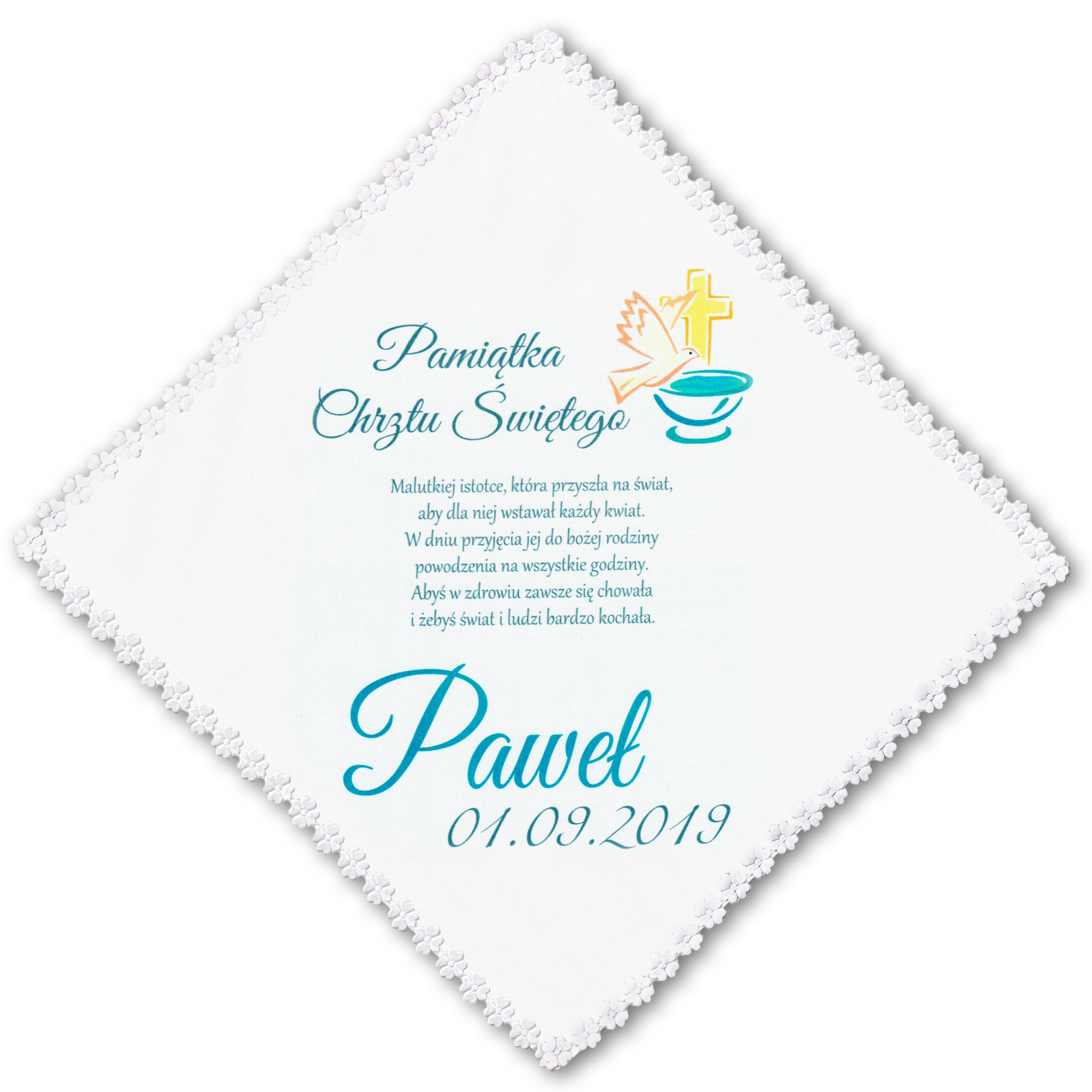 Элегантный крестильный шрифт квадратной формы и имя ребенка бирюзового цвета. Идеальная модель как для девочек, так и для мальчиков.