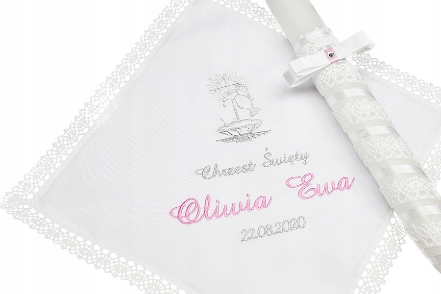 ОДЕЖДА с элегантной именной вышивкой и датой Крещения, размеры 28х28 см