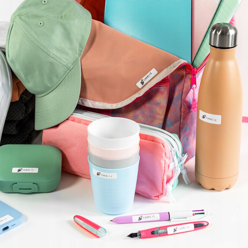 Но это еще не все! С помощью ярлыков, включенных в набор, можно персонализировать чепуху, такую как питье бутылки, бутерброды, ручки, карандашные чехлы и многое другое. Темные ткани. Марки, специально покрытые этикетками, помогают персонализировать неабсорбентные материалы и могут быть на 100% промыть в посудомоечной машине.
