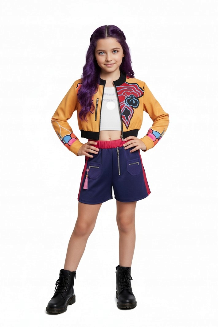 Перенесите энергию K-POP и динамичный стиль популярных игр прямо в реальный мир! Этот уникальный наряд РУМИ (известный как Huntrix/HUNTR/X) — идеальный костюм для каждого поклонника смелых и красочных стилей. Руми — культовый персонаж/скин из вселенной K-POP Demon Hunters, завоевавший огромную популярность среди игроков FORTNITE!