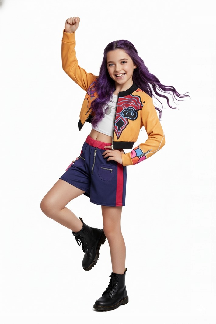 Перенесите энергию K-POP и динамичный стиль популярных игр прямо в реальный мир! Этот уникальный наряд РУМИ (известный как Huntrix/HUNTR/X) — идеальный костюм для каждого поклонника смелых и красочных стилей. Руми — культовый персонаж/скин из вселенной K-POP Demon Hunters, завоевавший огромную популярность среди игроков FORTNITE!