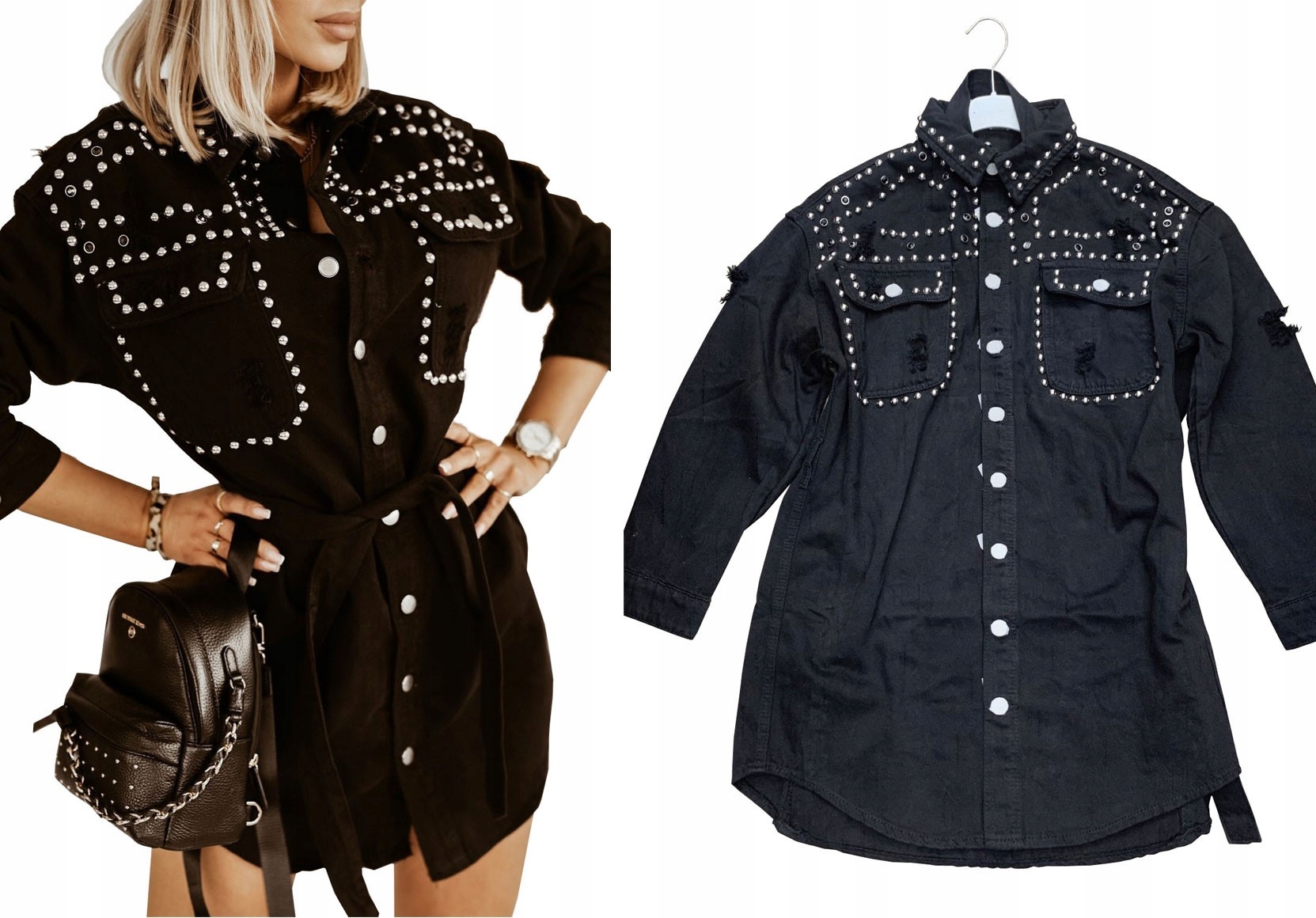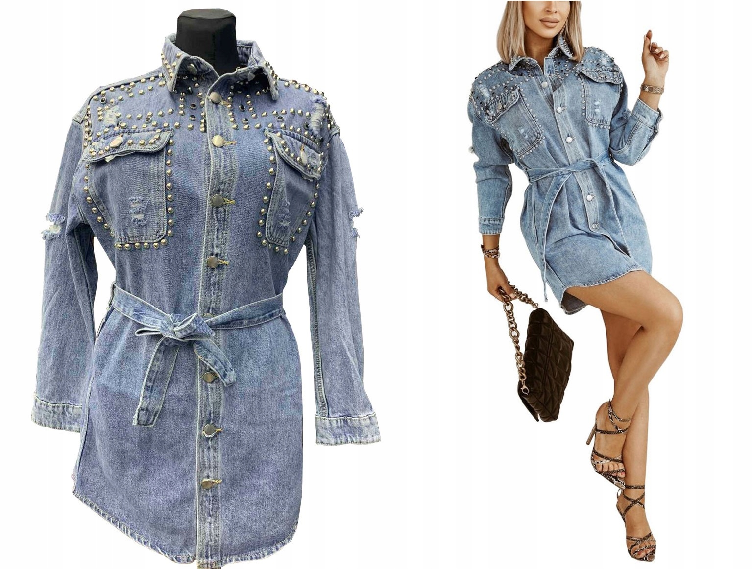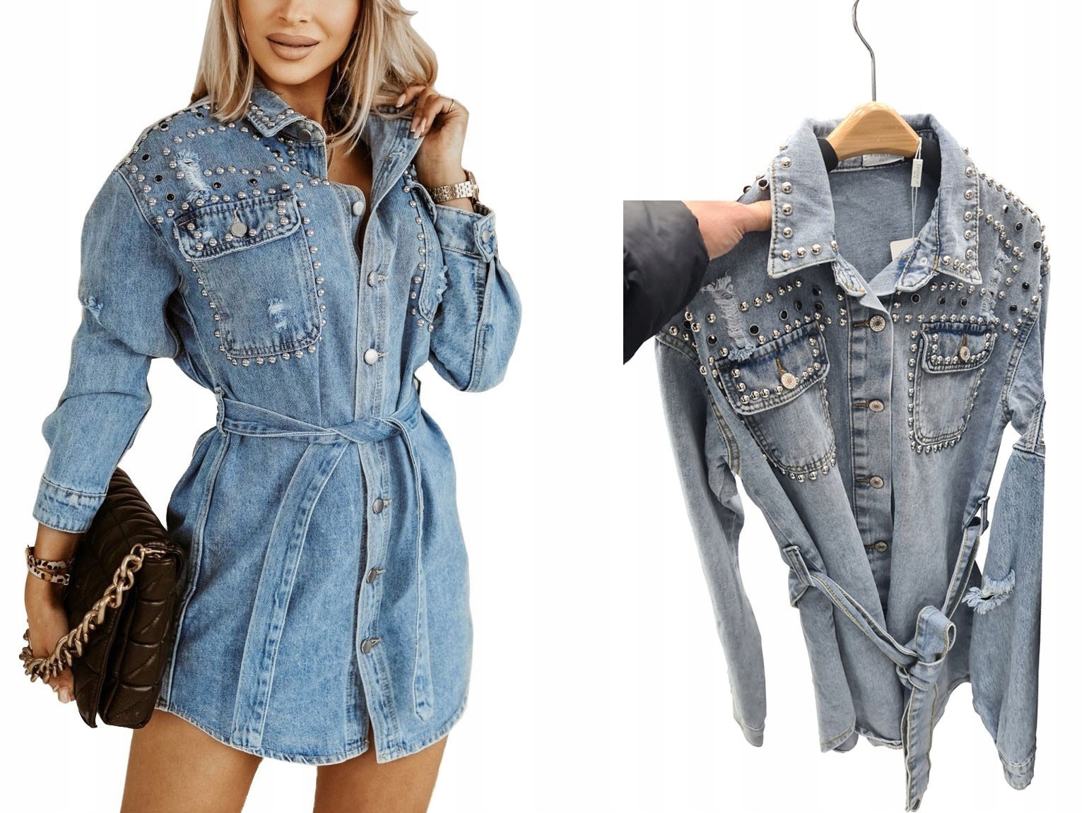 Джинсовое платье красиво оформлено заклепками/шпильками, , которые добавляют платье характер и когти. Приблизительно простой рубашка Cut с двумя закрепленными карманами сверху. все закреплены кнопками. Привязанный к талии, позволяет подчеркнуть талию. платье отлично подходит в стилизации с леггинсами или трубками, но соло сияет больше всего.