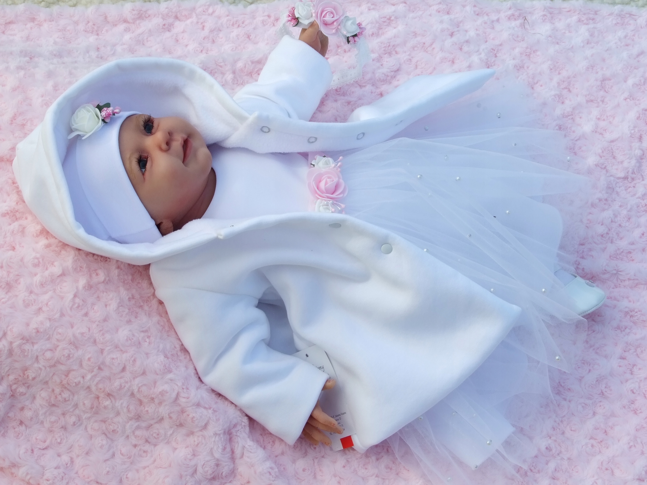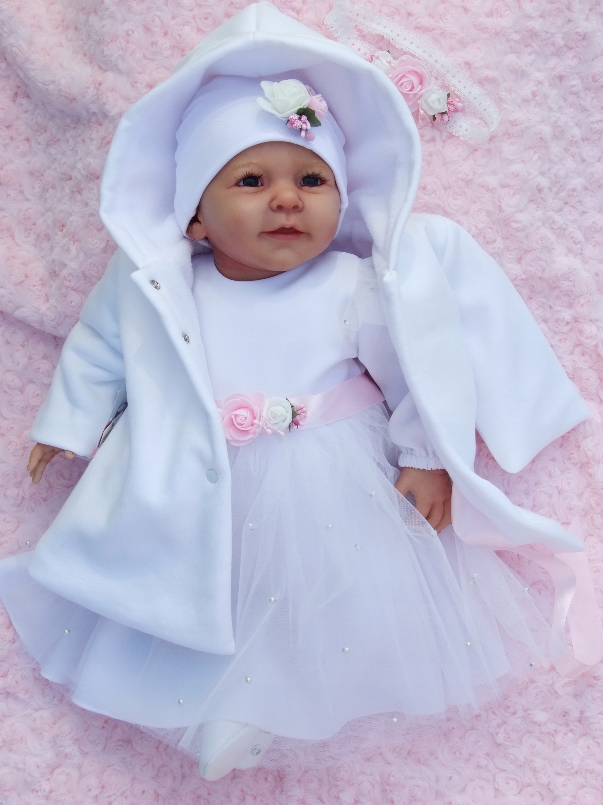 Odzież do CHRZTU-Płaszczy Sukienka Czapka Opaska 62r PERŁA