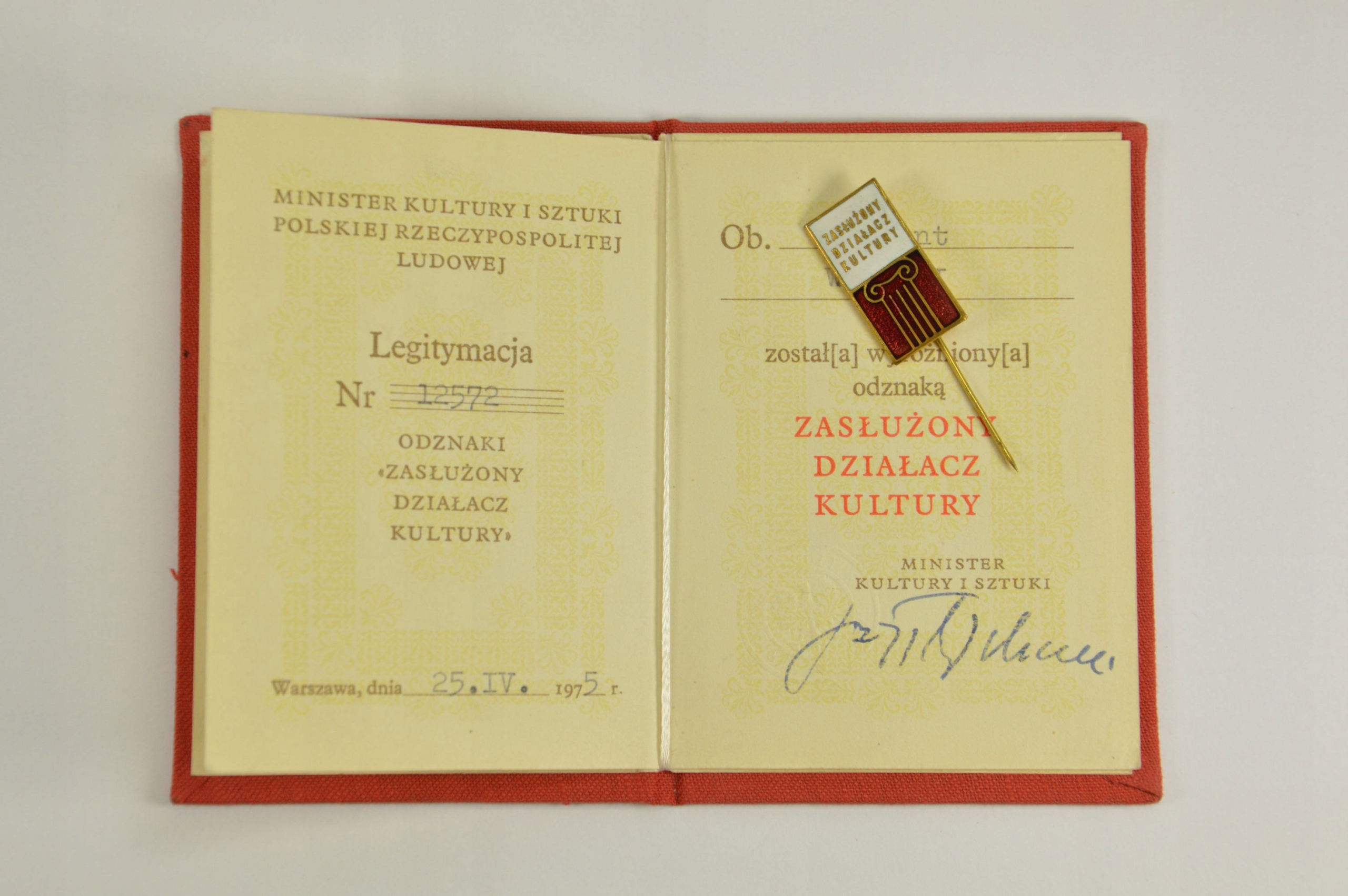 ODZNAKA ZASŁUŻONY DZIAŁACZ KULTURY LEGITYMACJA