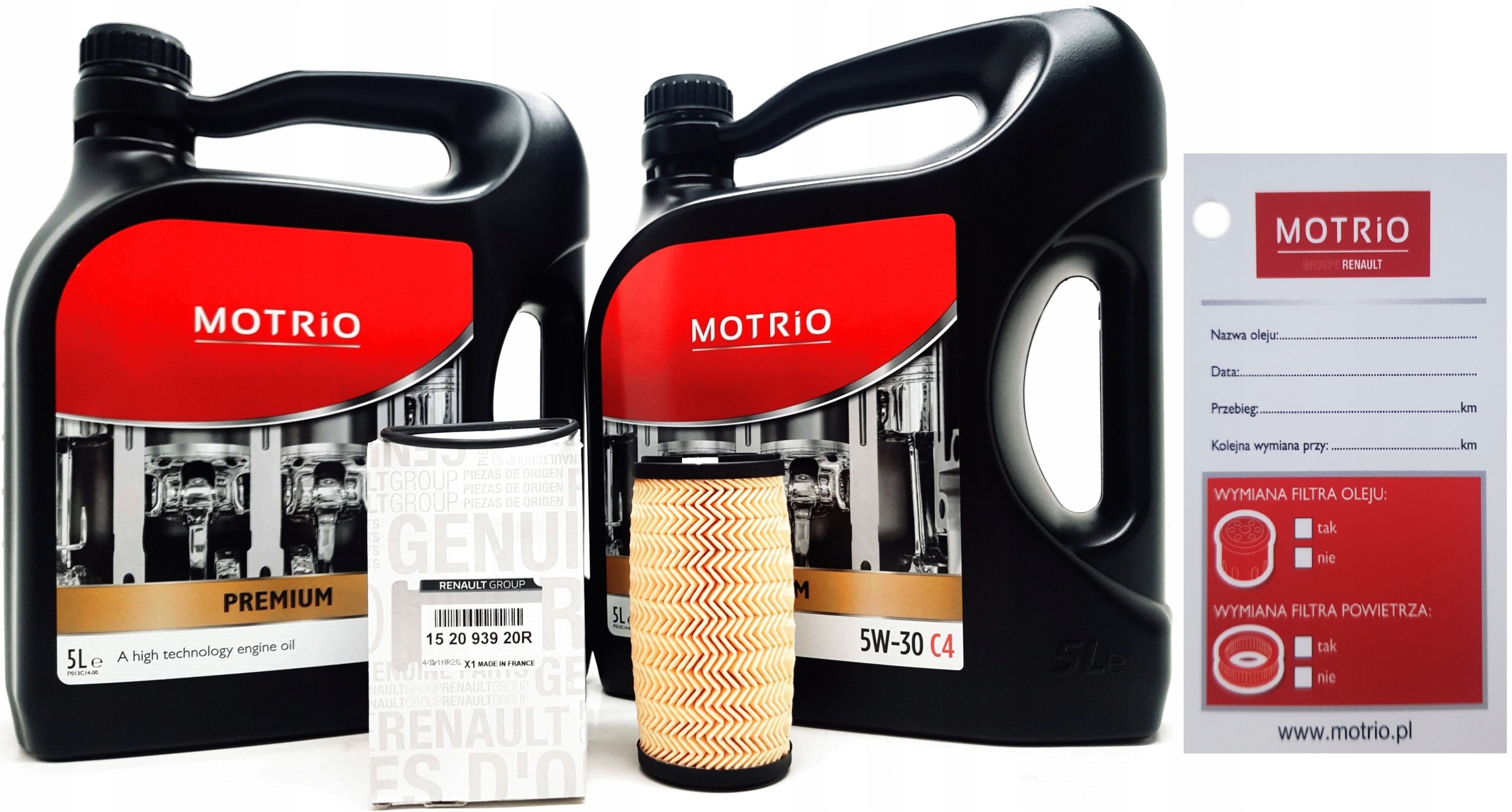 Оригинальный масляный фильтр + масло + карта замены масла и наклейка.