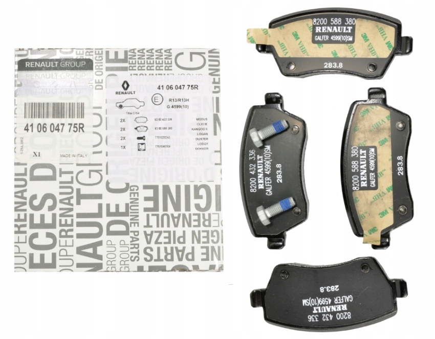 RENAULT, оригинальные тормозные колодки на переднюю ось.