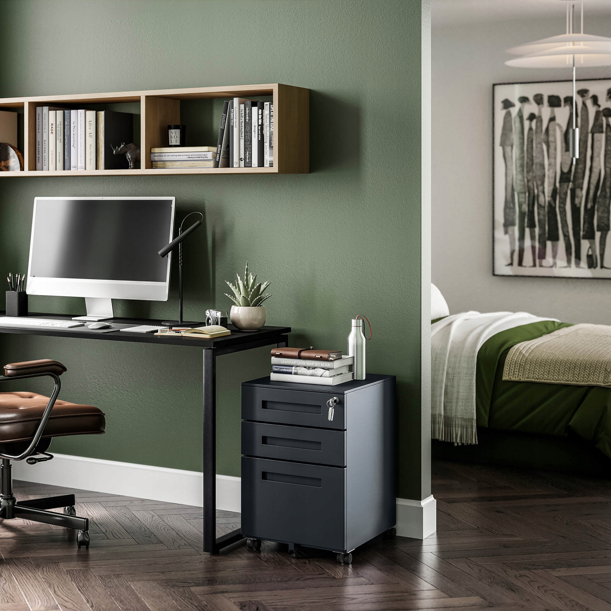 Металлический контейнер с минималистским блоком и небольшими размерами отлично даже для офисов с ограниченной областью или для домашних офисов.