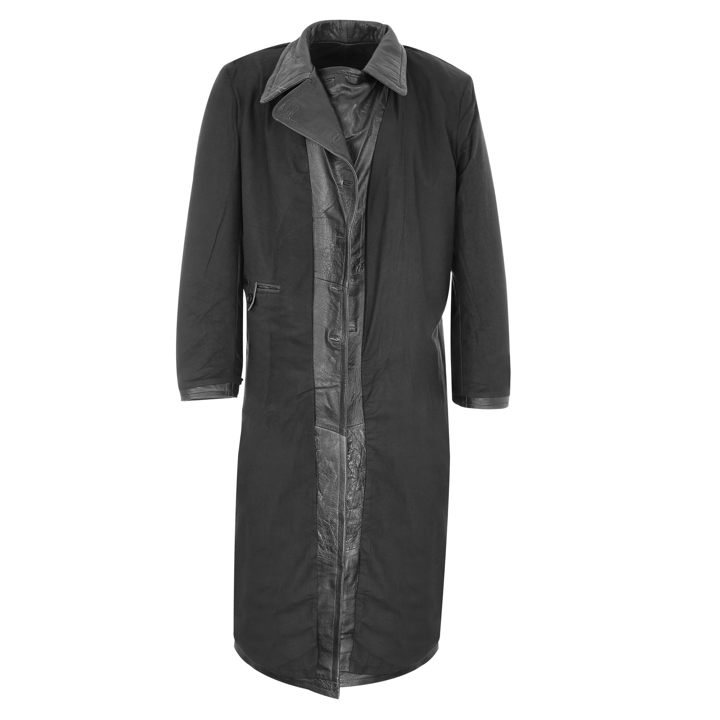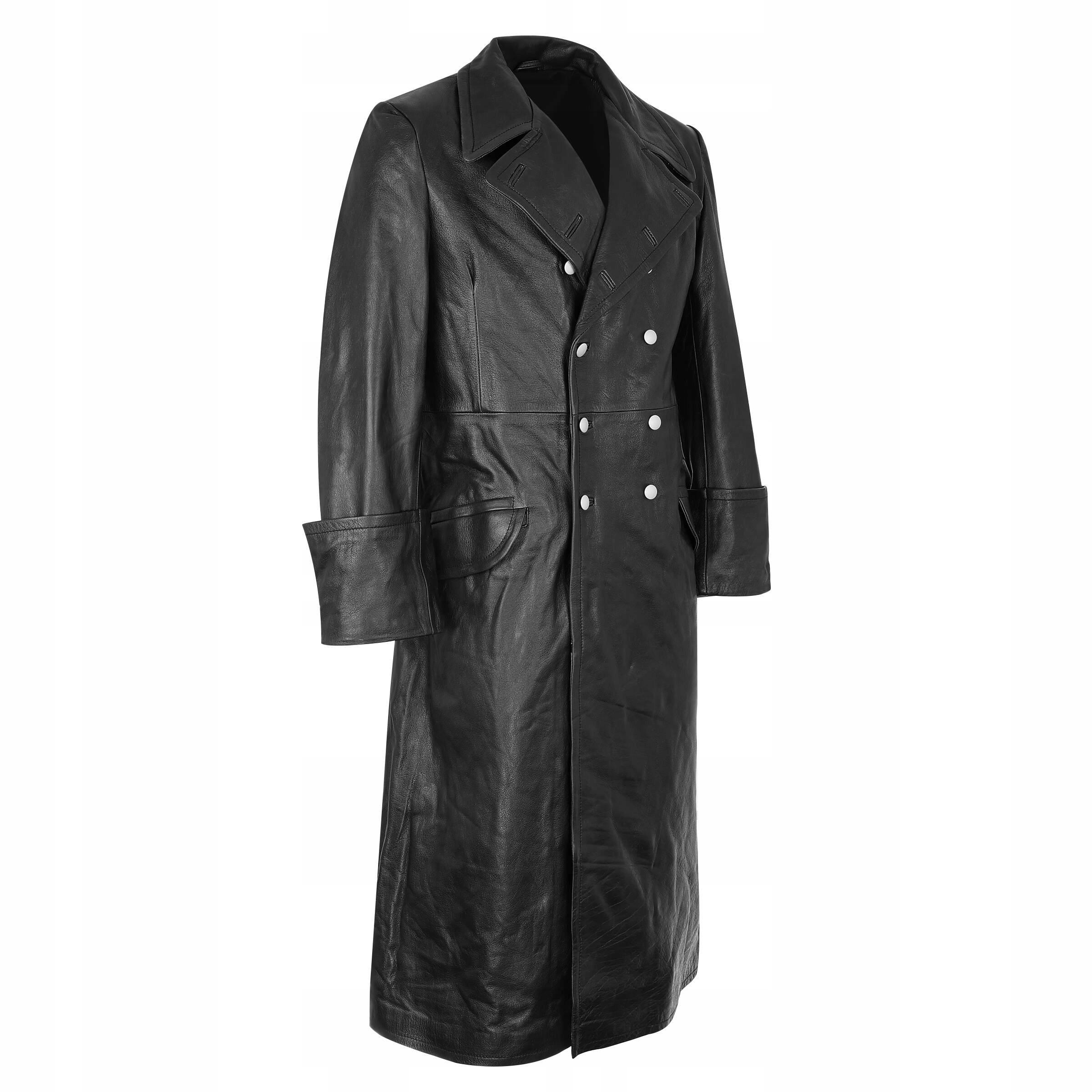 Кожаное пальто, похожее на немецкое, используемое в СС. Пальто выполнено из кожи буйвола, подкладка - хлопок. Пальто имеет два больших набедренных кармана, закрывающихся клапанами, и один внутренний карман, двубортное, застегивается на 8 пуговиц. Разрез сзади обеспечивает лучшую циркуляцию воздуха и делает пальто не сковывающим движения.