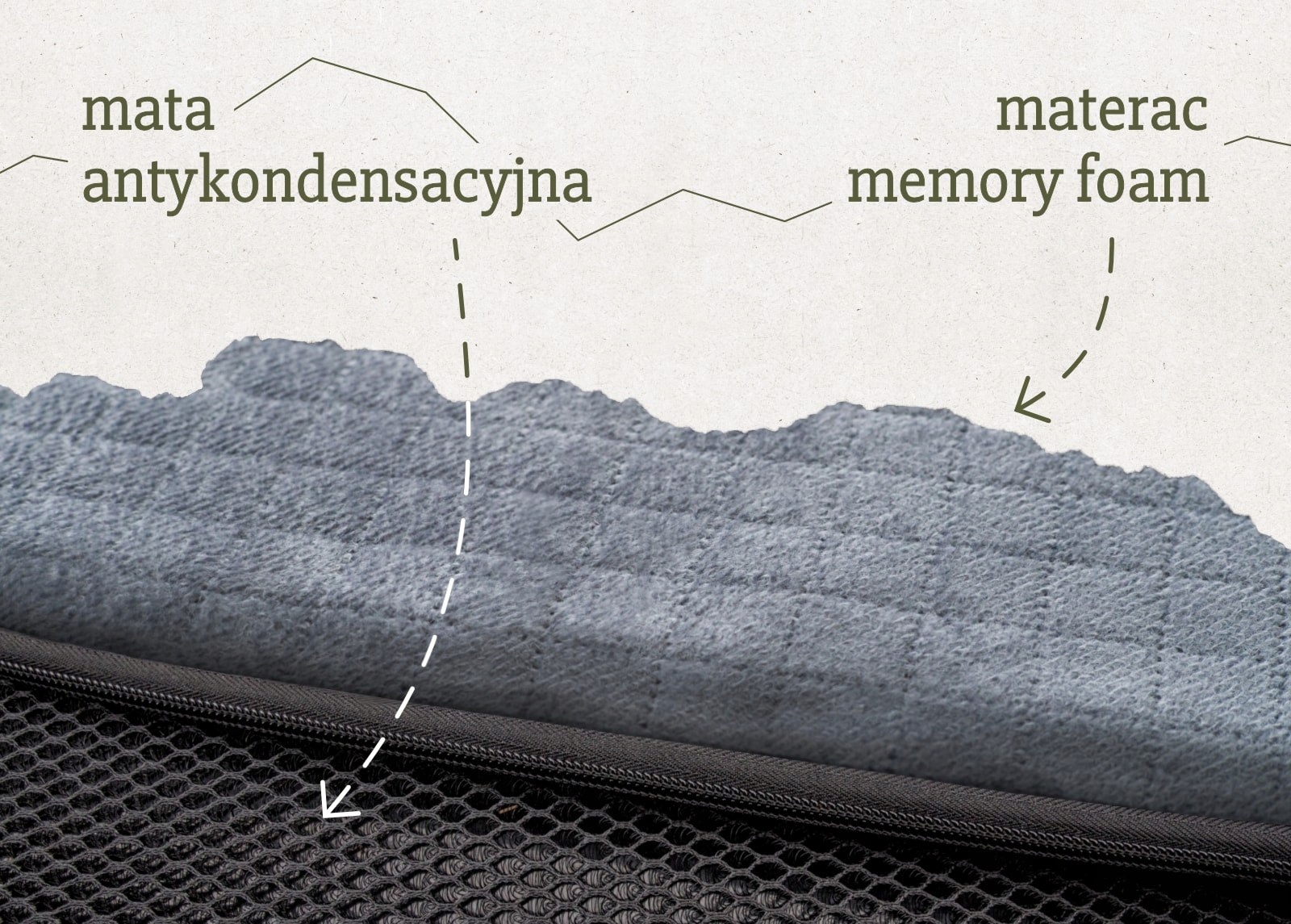 Под матрасом находится антиконденсационный коврик. Это специальный слой, предназначенный для ограничения конденсации водяных паров. В процессе использования палатки, особенно когда температура снаружи ниже, а внутри теплее, влага в виде водяного пара начинает конденсироваться на холодных поверхностях, в том числе и на материале крыши палатки.