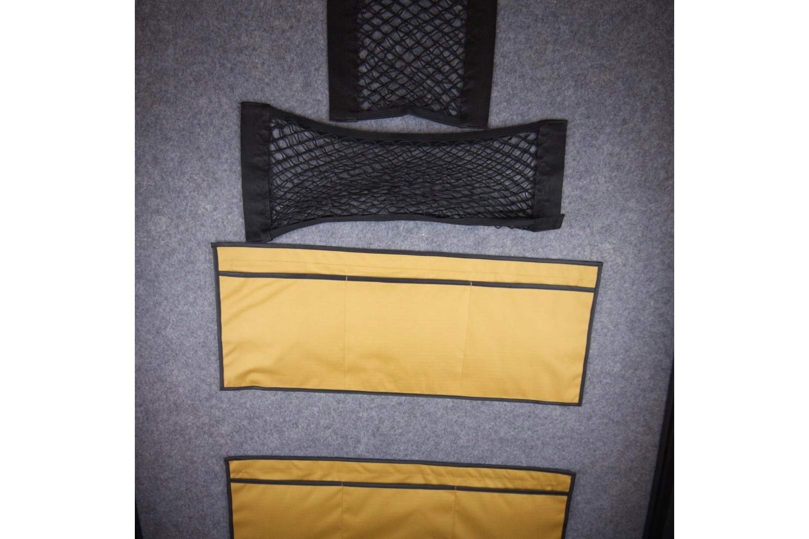 Внутренняя часть чехол покрыт мягким автомобильным ковриком, к которому с помощью липучек можно прикрепить различные аксессуары, такие как сумки, карманы, освещение, павербанки и т. д.
