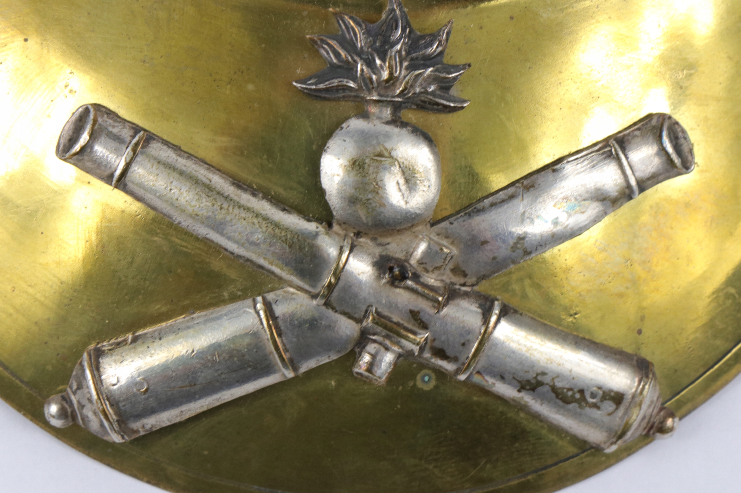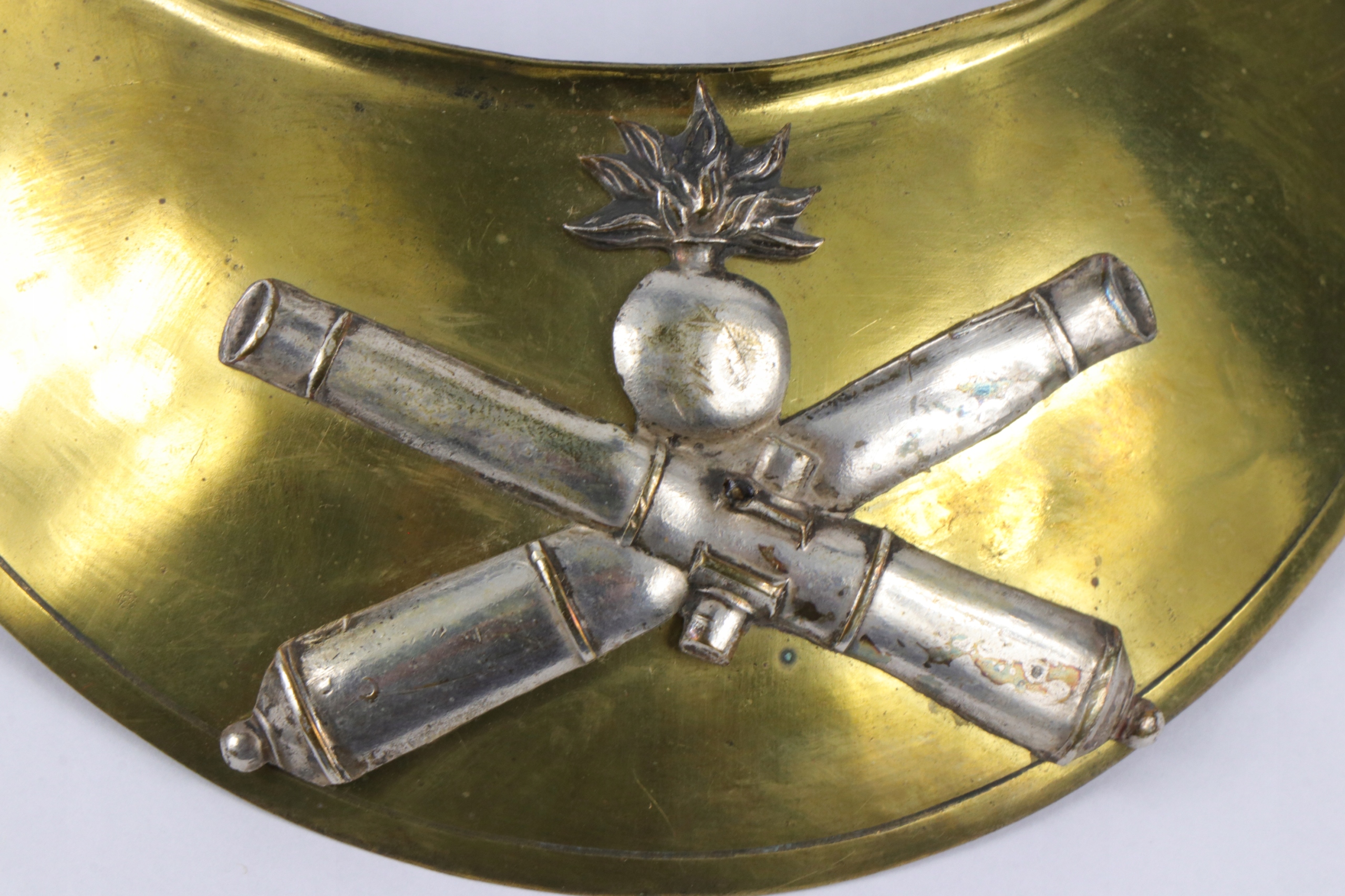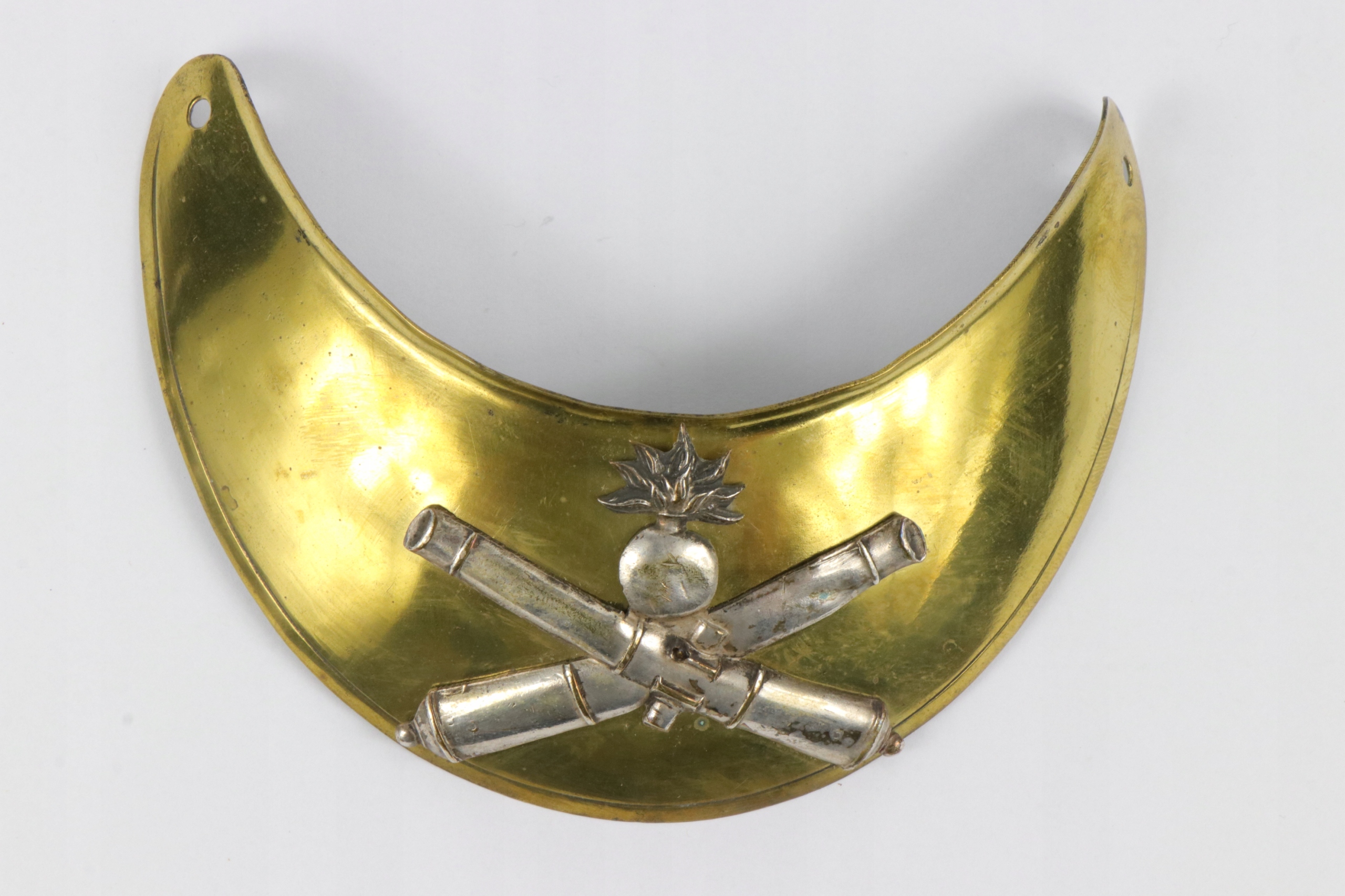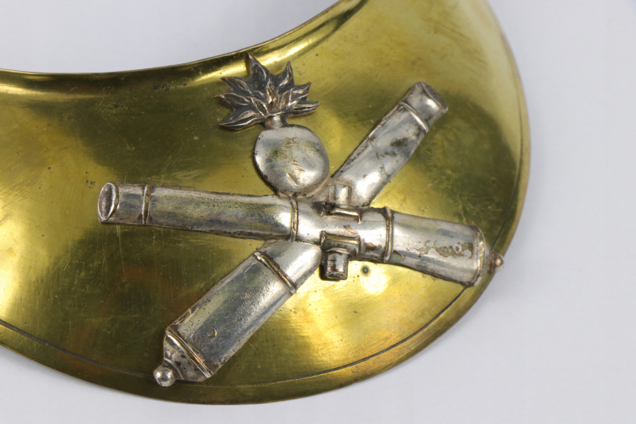 Французский Ryngraf Hausse-Col из артиллерийского офицера. Серебряное латунное нанесение размещено на латунную табличку. Ryngraf выглядит очень старым. b> Материал : латунь