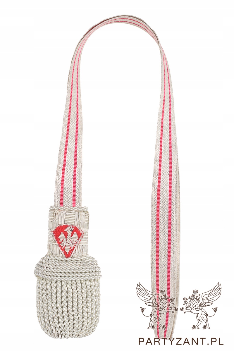 Офицерский сабельный ремень, выполненный из серебряного металлизированного шнура, с польским орлом на красном щите на кисточке с обеих сторон, расшитый вручную бубликом.