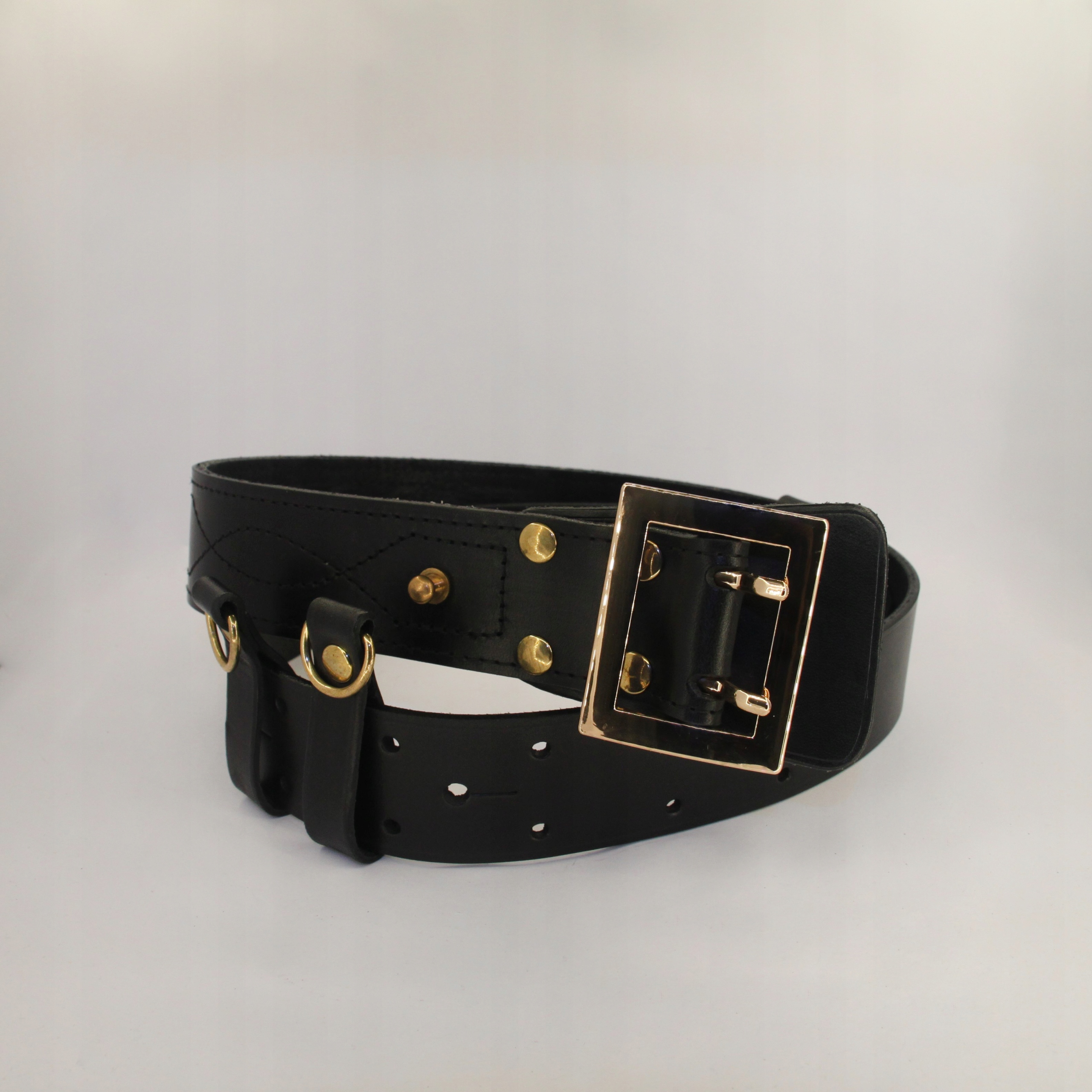 ОФІЦЕРСЬКИЙ ШКІРЯНИЙ РЕМІНЬ чорний ПОЛІЦІЙСЬКИЙ - ВІЙСЬКОВИЙ - ГВАРДІЙНИЙ золото 134см R3