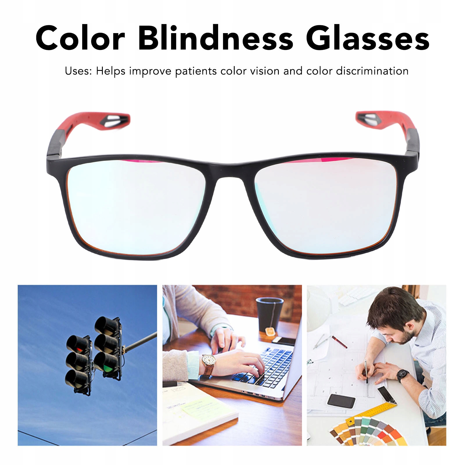 Особенность:1. Солнцезащитные очки для дальтоников: очки для коррекции цвета не только позволяют людям с дефицитом цвета ощущать изменения цвета в жизни, но также могут использоваться в различных помещениях и на открытом воздухе, особенно в условиях яркого освещения, их эффект более значителен.