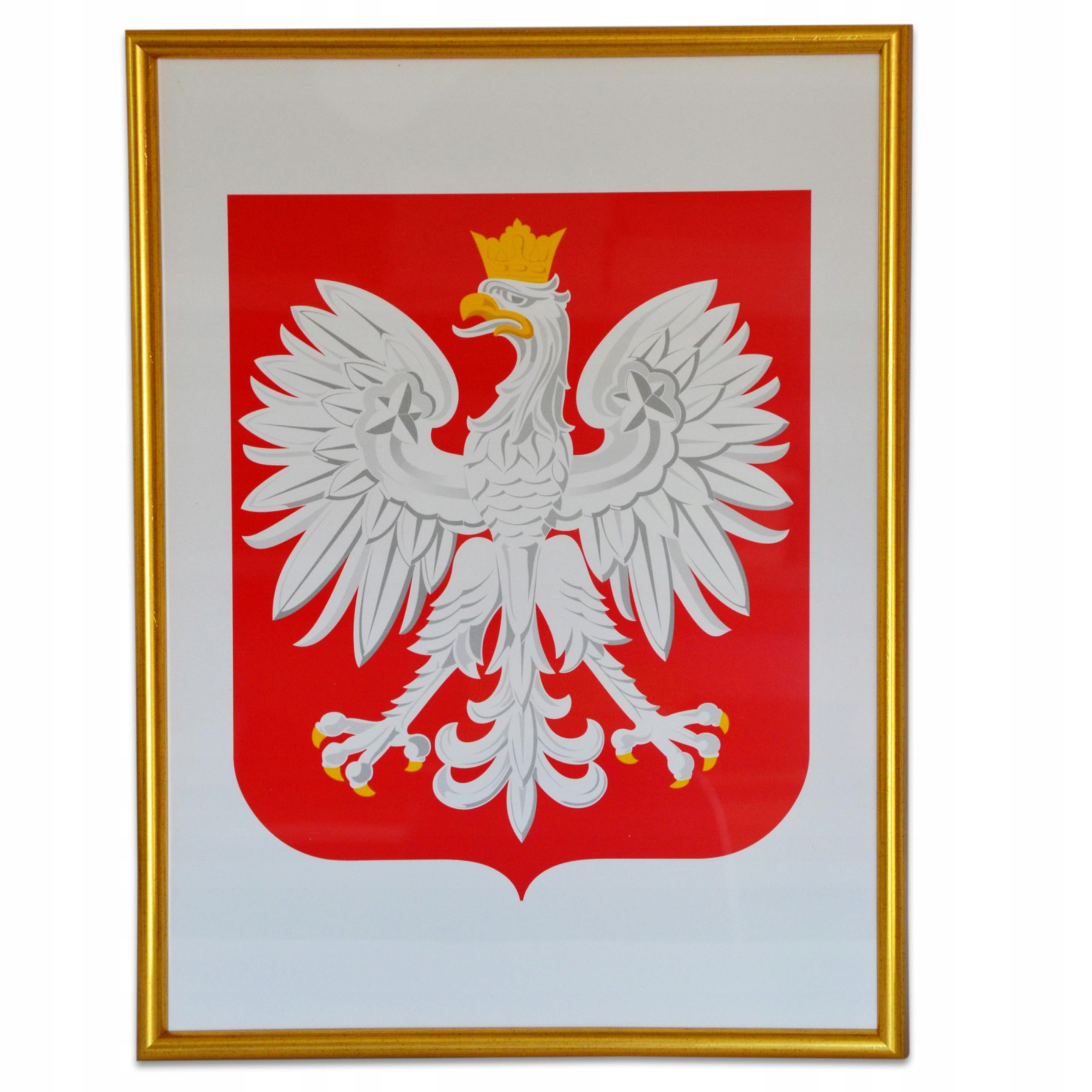 Герб Польши размером 30х21см в золотой деревянной рамке - А4