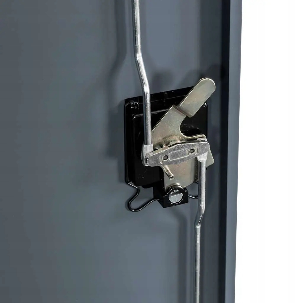 Содержимое шкафа защищено трехточечным ригельным замком, который фиксирует дверь в трех местах, ограничивая доступ посторонних лиц.