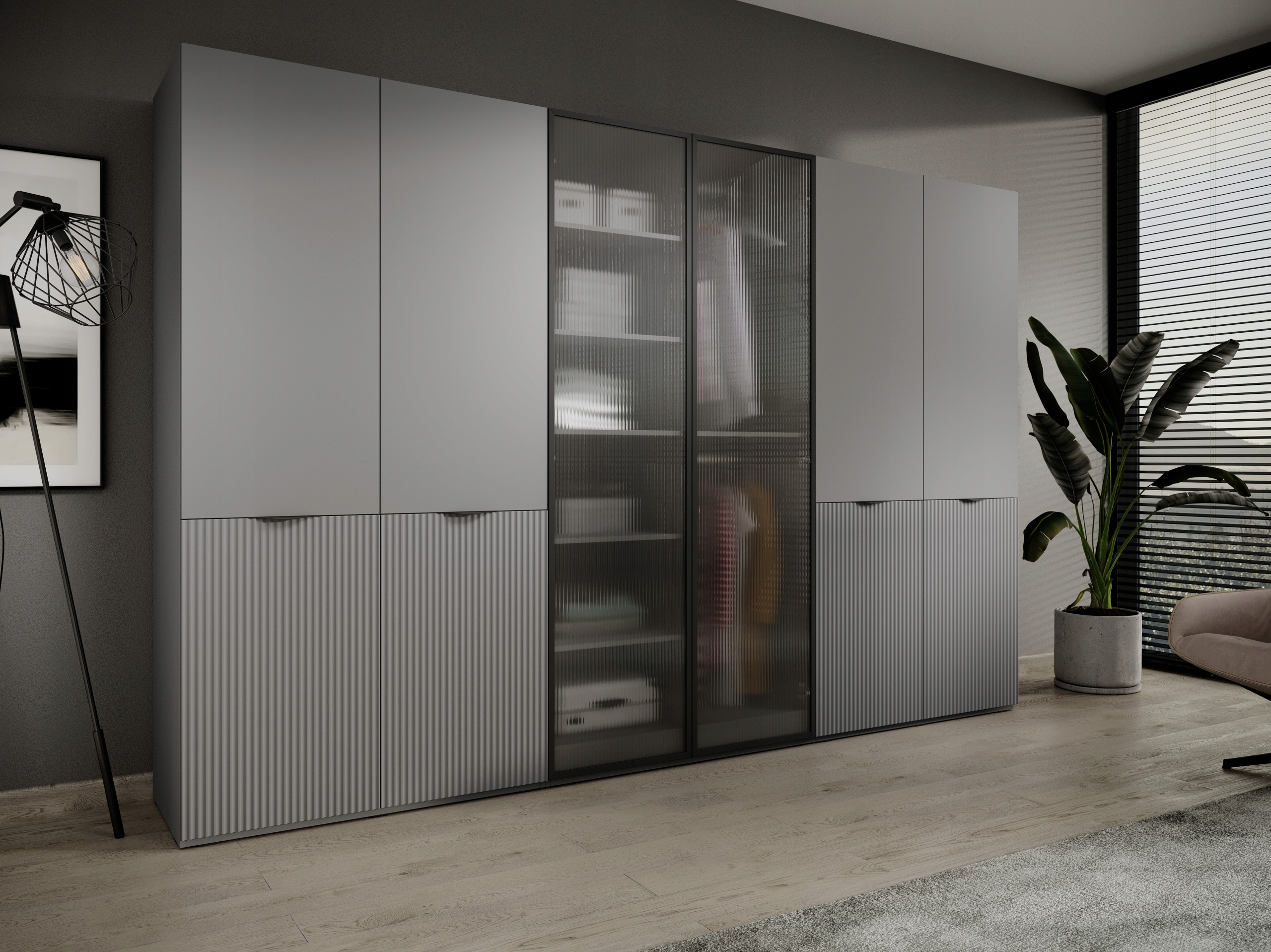 Шкаф офисный Glass Flutes закрытый с 10 полками, двухдверный, рифленый