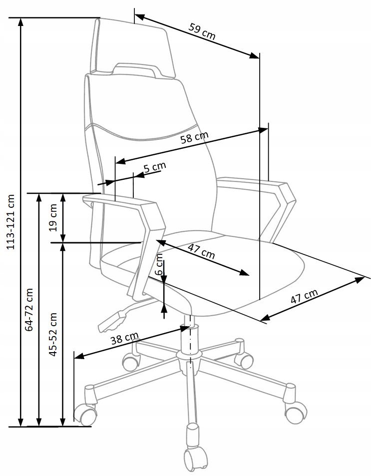 Кресло оснащено механизмом наклона, который позволяет ему свободно раскачиваться, вращать кресло и регулировать высоту сиденья.