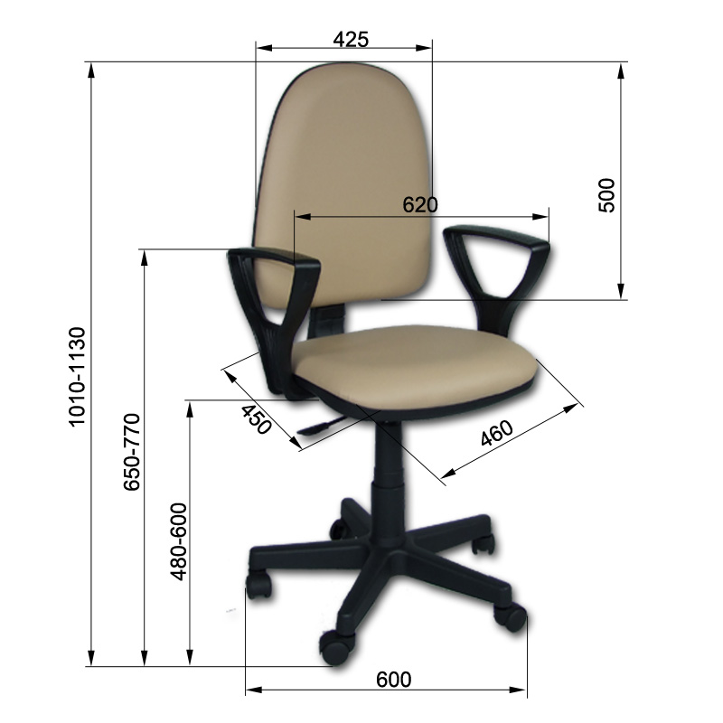 Стул имеет регулируемую высоту сиденья и угол наклона спинки.