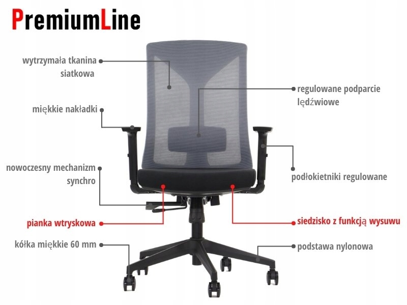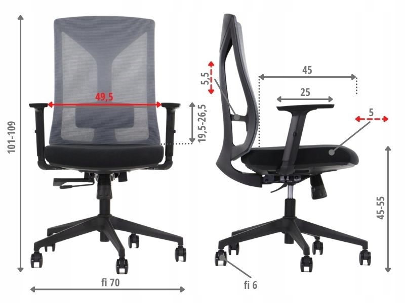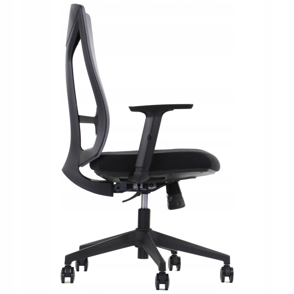 Поворотное офисное кресло оснащено механизмом, позволяющим изменять высоту, что позволяет позволяет настроить его под свои нужды. Кроме того, изделие имеет поясничную регулировку и удлинение сиденья.