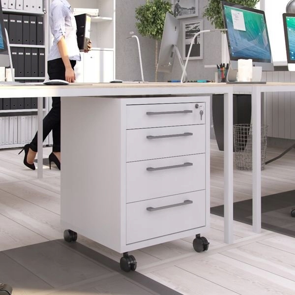 Офисная тумба Prima 4 белые колеса с ключом