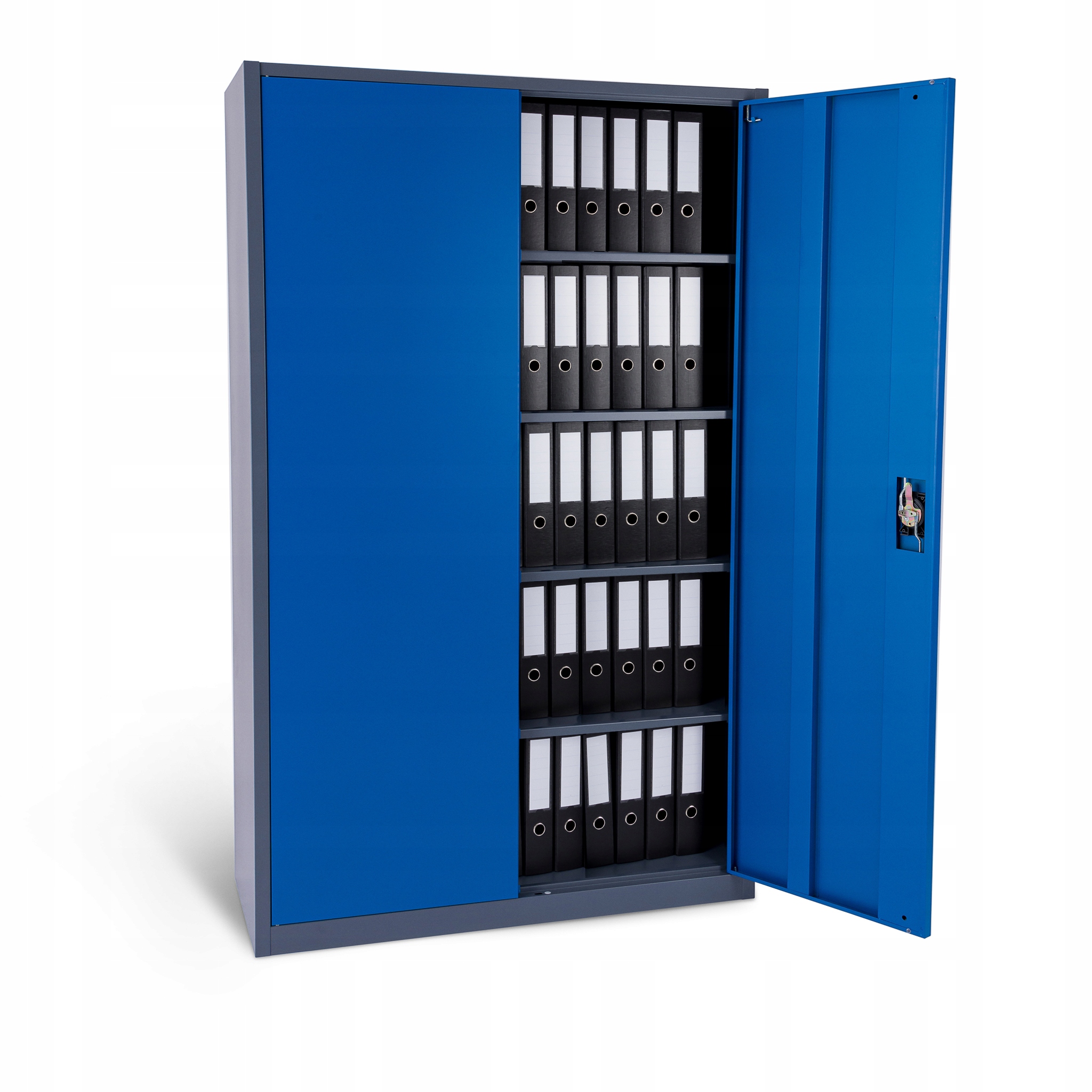 Оборудован 4 стабильным полки. Каждая полка может быть загружена весом до 50 кг (даже с распределением нагрузки). Сплошная и стабильная конструкция гардероба в сочетании с высококачественным 3 -точечным замком обеспечивает защиту от доступа несанкционированными людьми.