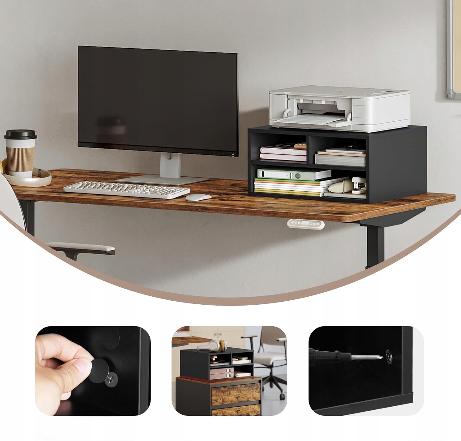 СОВРЕМЕННО И ПРАКТИЧНО: Выполненная в классическом цвете настольная полка минималистична и современна, что позволяет легко вписаться в любой стиль интерьера и универсально использовать в качестве подставки для проигрывателя, письменного стола. органайзер, полка для принтера, подставка для игровой консоли и т. д.