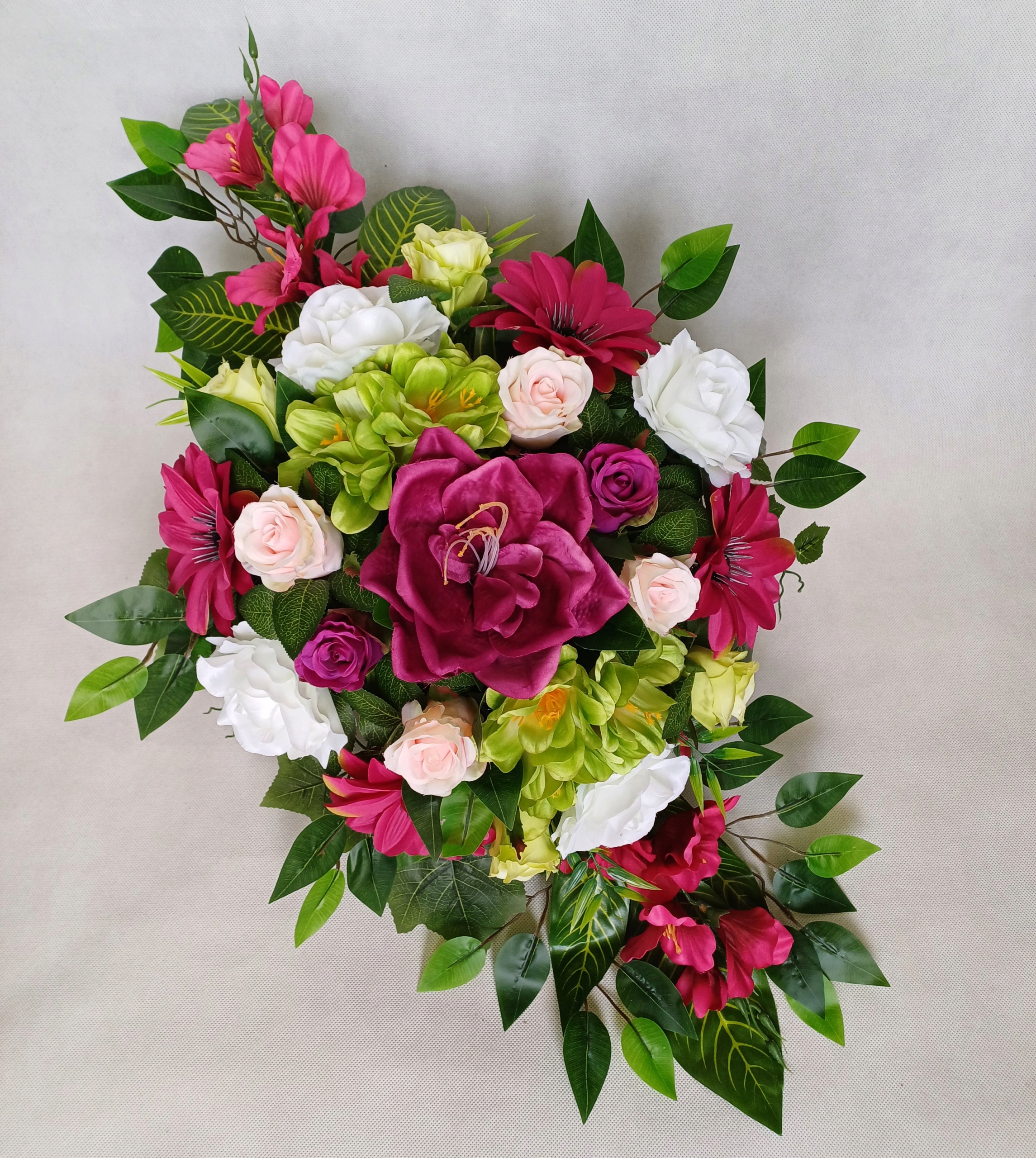 Цветочная композиция изготовлена из качественных искусственных цветов.