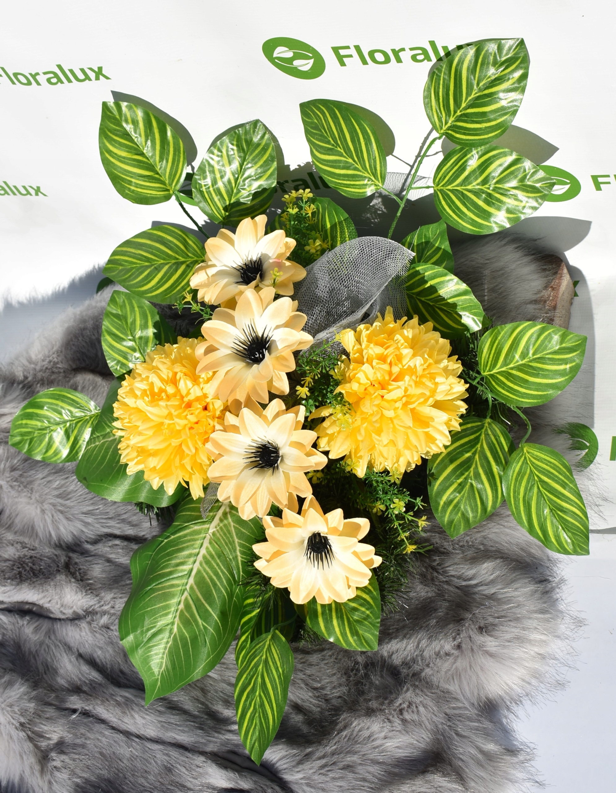 Букет WZ027 – идеальный способ быстро и элегантно украсить могилу своих близких. Идеально подойдет как ко Дню поминовения усопших, так и в другие дни, когда вы хотите позаботиться о памяти своих близких. Все материалы, которые мы использовали для его изготовления, устойчивы к погодным условиям. Это значит, что эта цветочная композиция будет долго выглядеть так же красиво, как и в день, когда ее поставили на кладбище. Букет WZ027 выполнен на искусственной основе, так называемой BOWL с использованием искусственных цветов высочайшего качества.
