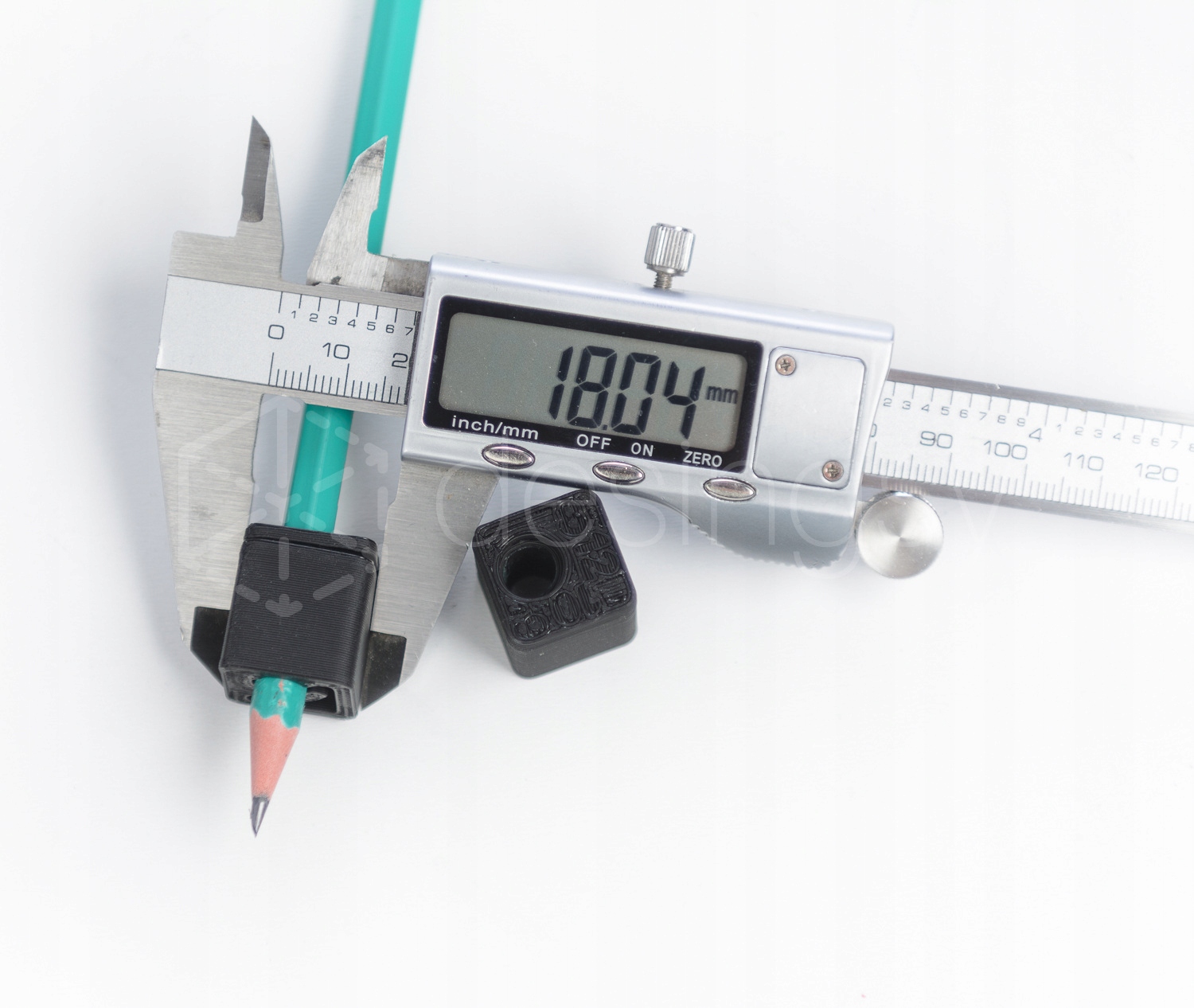 Кроме того, геометрия неполное отверстие плотно зажимает карандаш BIC, что предотвращает его выпадение во время работы.