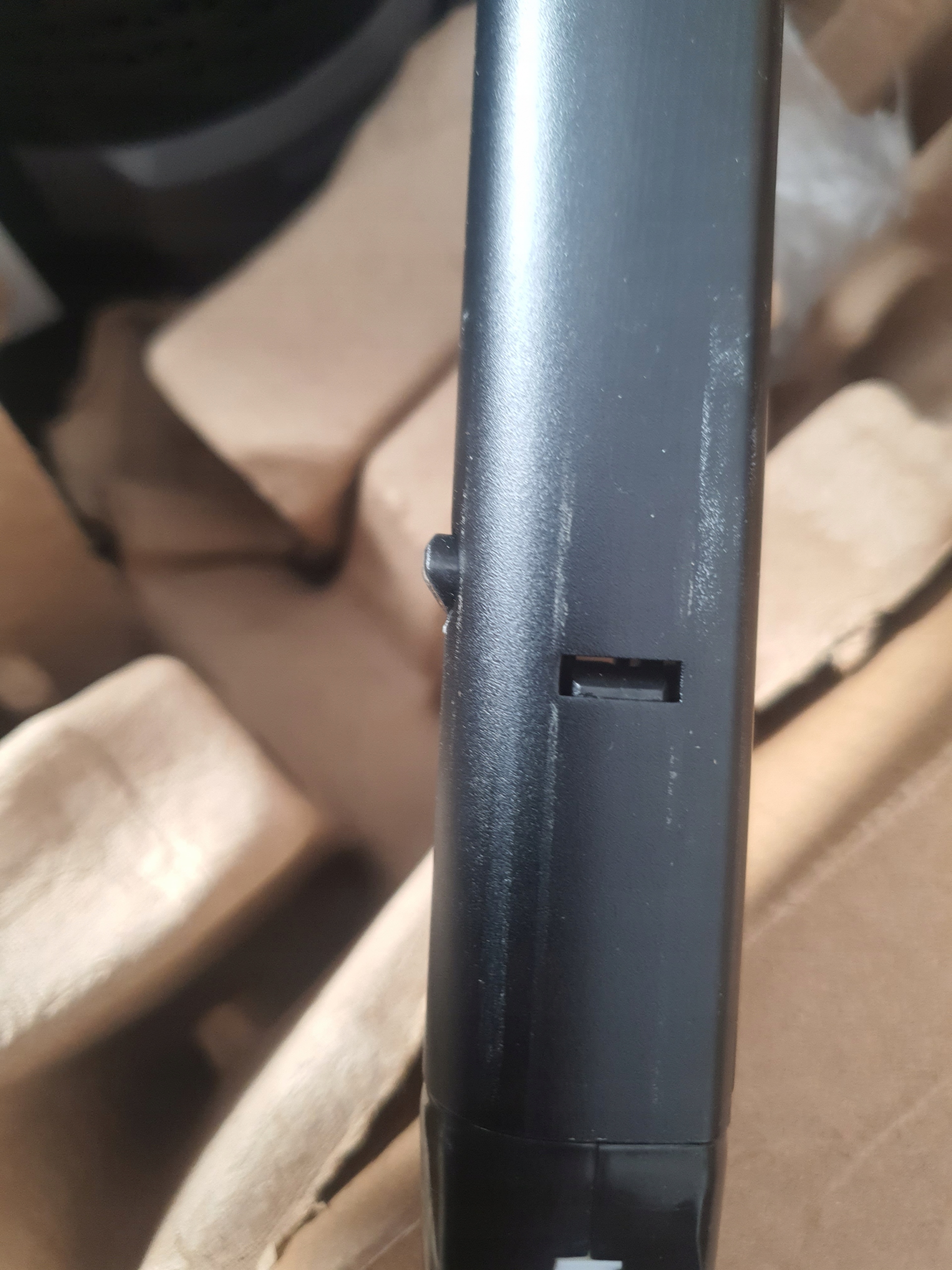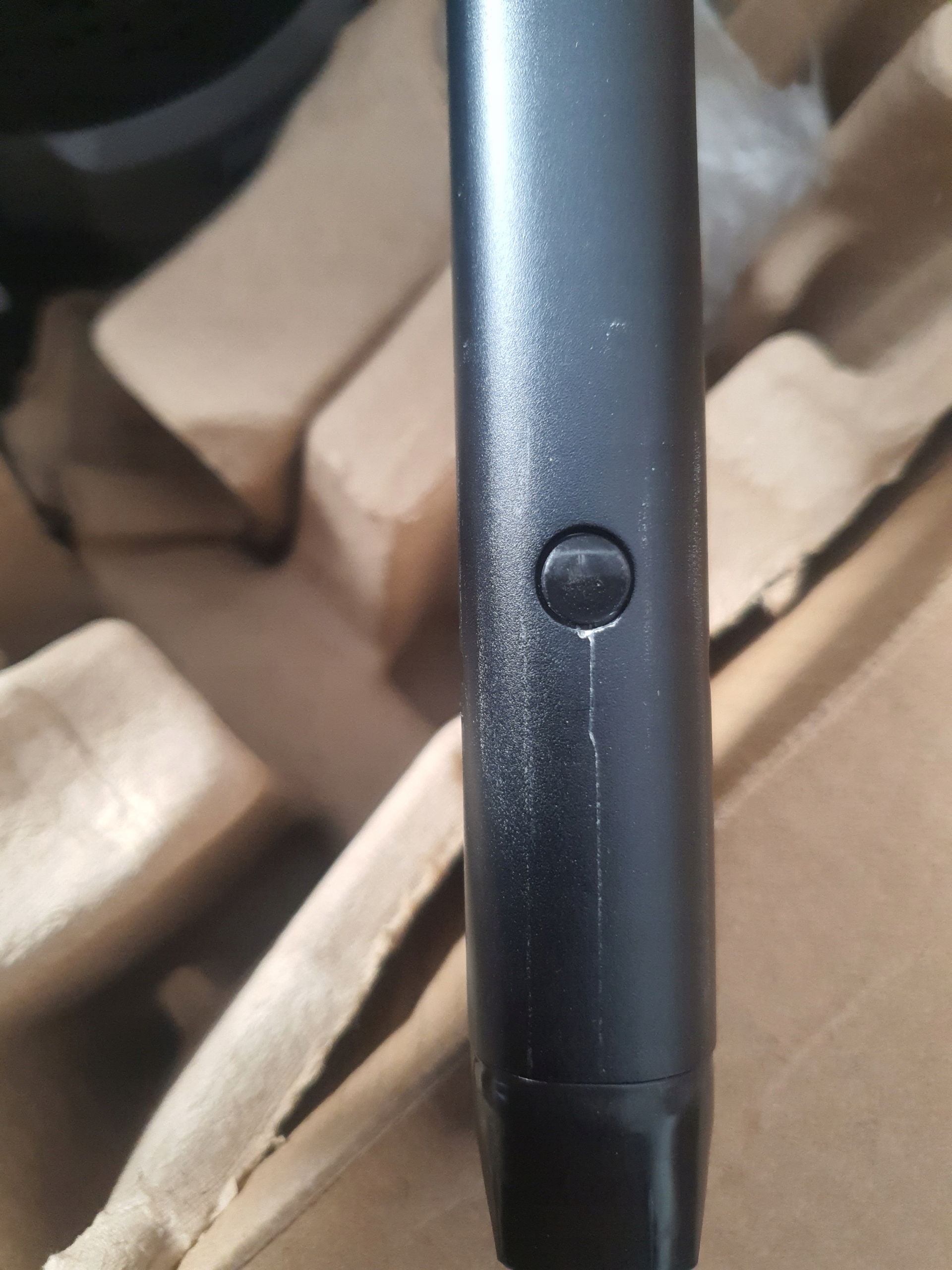 после возвращения. Оригинальная упаковка. Вакуумный чистящий, имеет пыль/грязный круг и кисть. Сломанная кнопка длинной ручки. Он носится нормально, но для удаления необходимо нажать в отверстие в задней части пылесоса, где должна быть кнопка отвертки или что -то подобное, и потянуть ручку