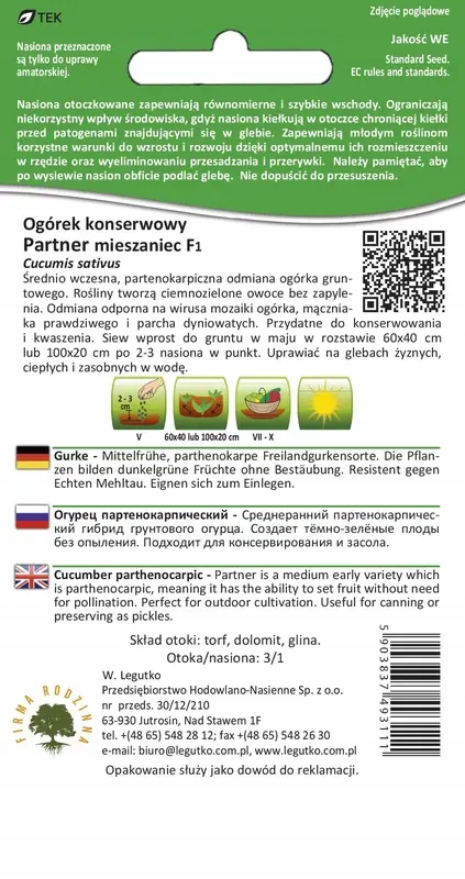 Огірок партенокарпічний Партнер F1 Грін 50шт - Насіння - W. Legutko