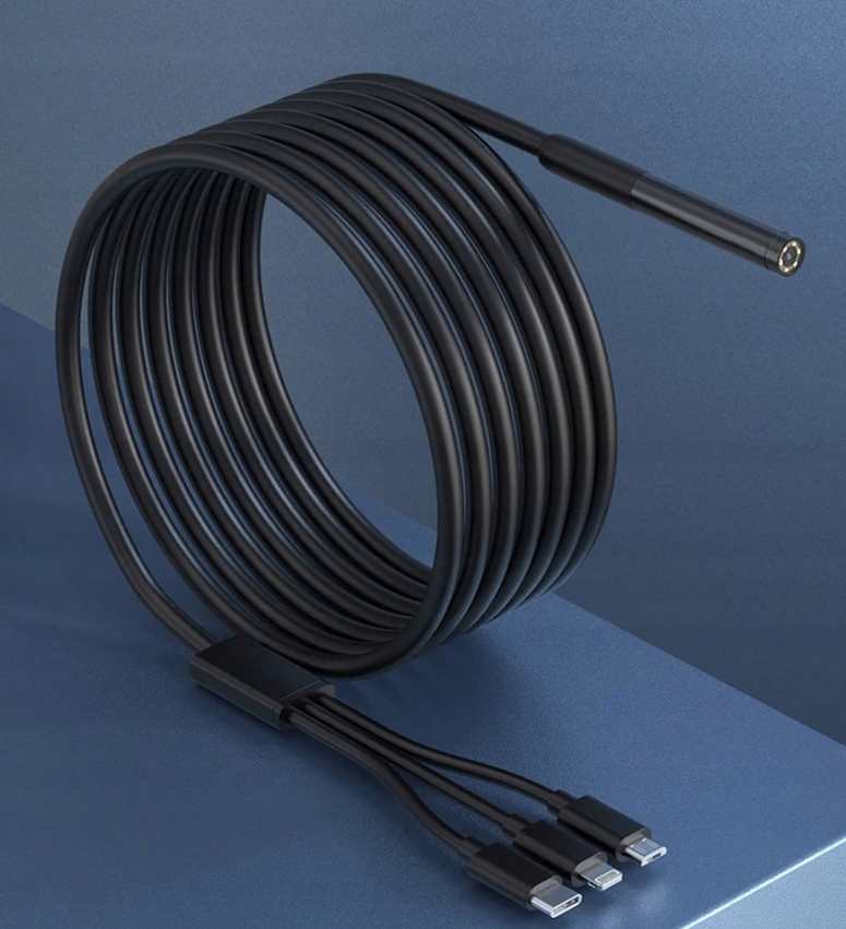 - Приложение камеры + 3 Концы кабеля - камера совместима с телефоном, в котором вы устанавливаете приложения Anesok. Приложение работает в таких системах, как Android и iOS. Камера имеет 3 совета по телефону, такие как: MicroUSB, Lightning и USB -C.