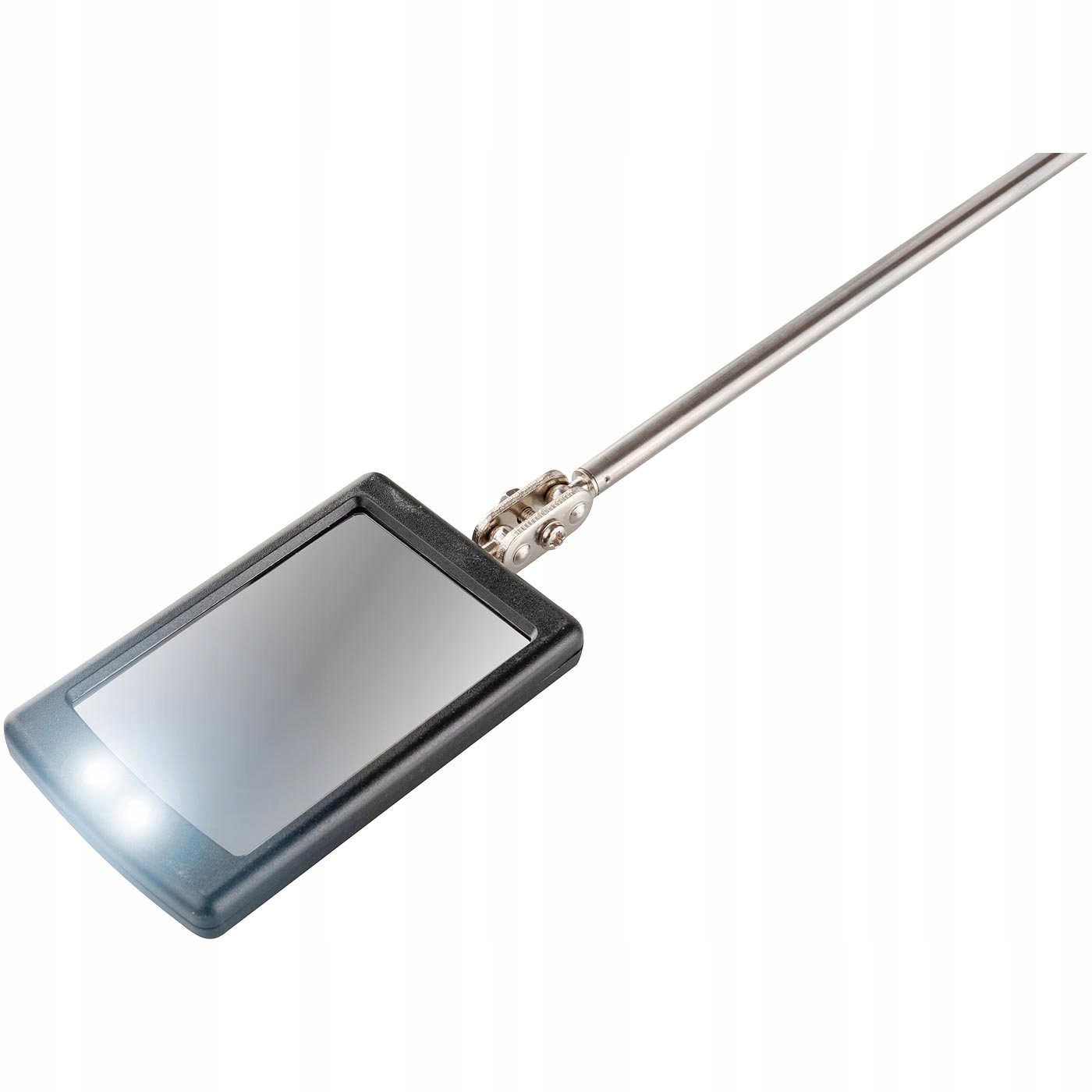 Телескопическое смотровое зеркало прямоугольной формы со светодиодной подсветкой, размеры 80 х 50 мм.